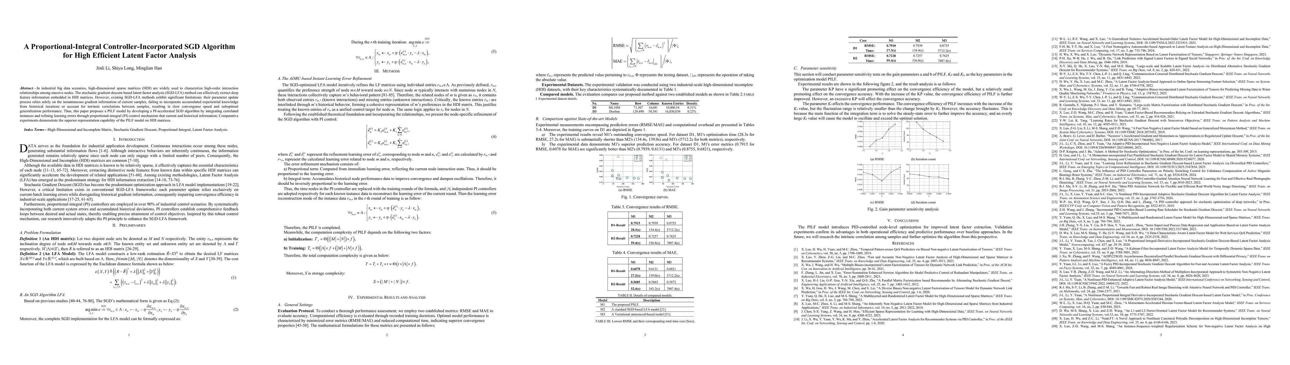 In industrial big data scenarios, high-dimensional sparse matrices (HDI) are widely used to characterize high-order interaction relationships among massive nodes. The stochastic gradient descent-based latent factor analysis (SGD-LFA) method can effectively extract deep feature information embedded in HDI matrices. However, existing SGD-LFA methods exhibit significant limitations: their parameter update process relies solely on the instantaneous gradient information of current samples, failing to incorporate accumulated experiential knowledge from historical iterations or account for intrinsic correlations between samples, resulting in slow convergence speed and suboptimal generalization performance. Thus, this paper proposes a PILF model by developing a PI-accelerated SGD algorithm by integrating correlated instances and refining learning errors through proportional-integral (PI) control mechanism that current and historical information; Comparative experiments demonstrate the superior representation capability of the PILF model on HDI matrices