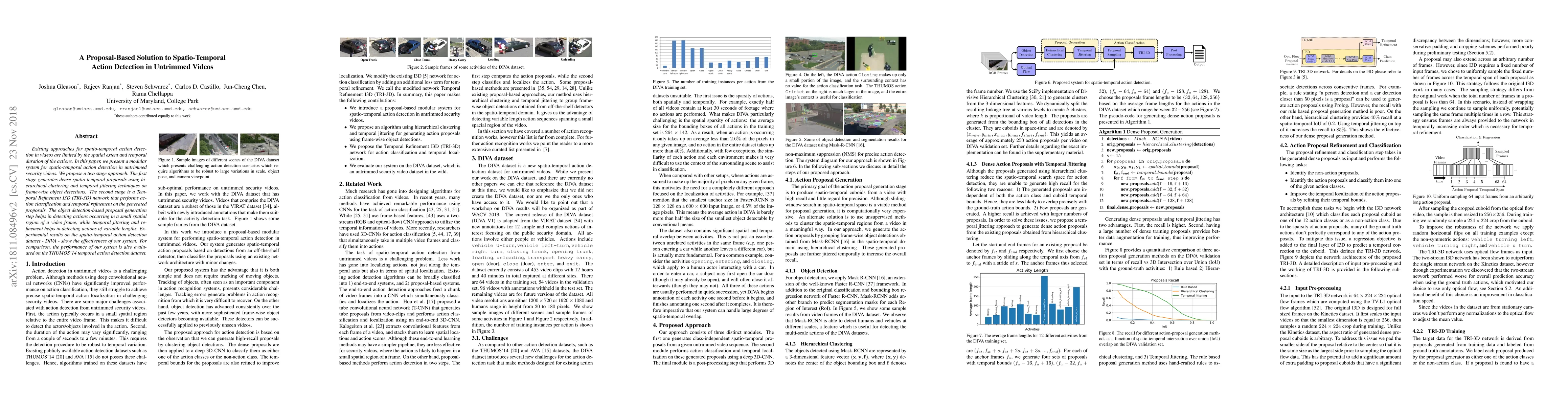 This paper proposes a modular system for spatio-temporal action detection in untrimmed videos using a two-stage approach: dense spatio-temporal proposal generation via hierarchical clustering and temporal jittering, followed by a Temporal Refinement I3D network for classification and temporal refinement. Experimental results on DIVA and THUMOS14 datasets demonstrate the system's effectiveness.