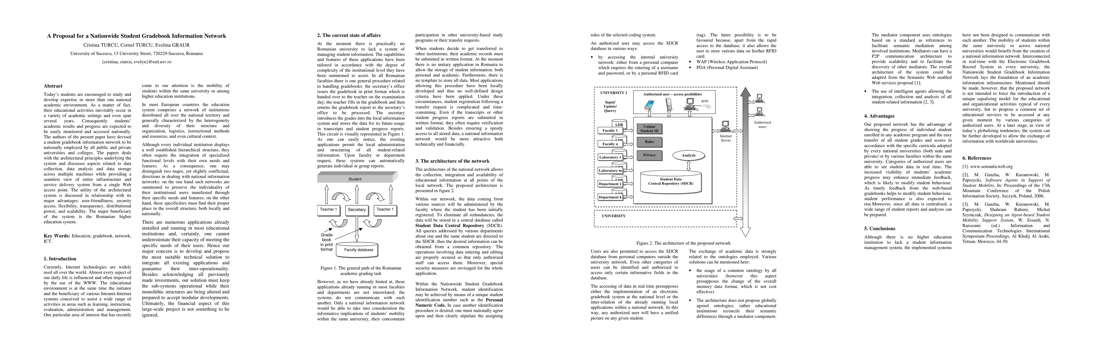 Todays students are encouraged to study and develop expertise in more than one national academic environment. As a matter of fact, their educational activities inevitably occur in a variety of academic settings and even span several years. Consequently students academic results and progress are expected to be easily monitored and accessed nationally. The authors of the present paper have devised a student gradebook information network to be nationally employed by all public and private universities and colleges. The papers deals with the architectural principles underlying the system and discusses aspects related to data collection, data analysis and data storage across multiple machines while providing a seamless view of entire infrastructure and service delivery system from a single Web access point. The utility of the architectural system is discussed in relationship with its major advantages: user-friendliness, security access, flexibility, transparency, distributional power, and scalability. The major beneficiary of the system is the Romanian higher education system.