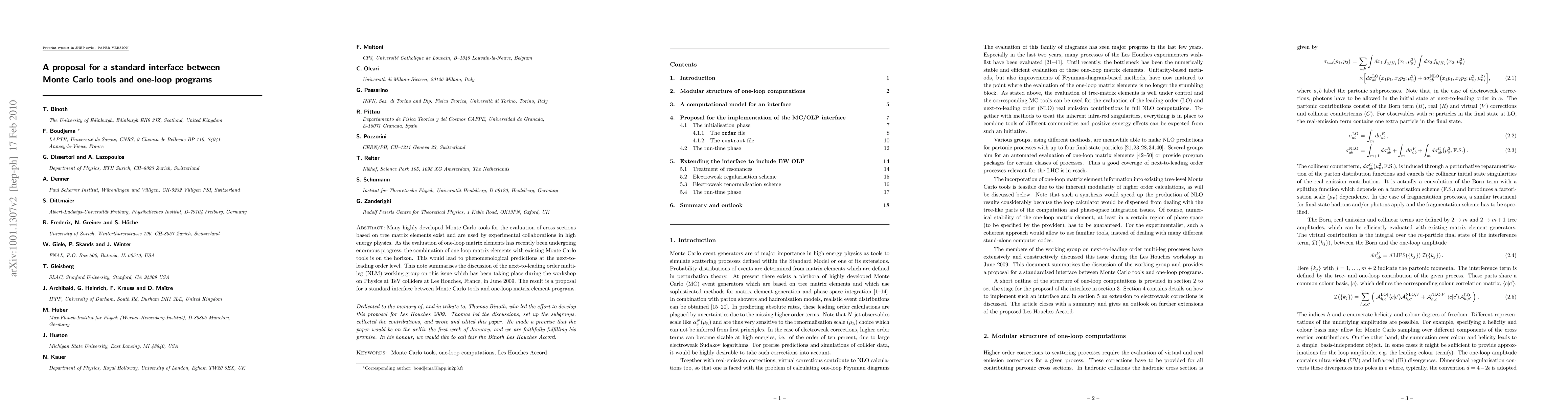 The paper proposes a standard interface for combining one-loop matrix element programs with existing Monte Carlo tools, aiming to enable phenomenological predictions at the next-to-leading order level in high energy physics. This proposal stems from the discussions of the NLM working group during the 2009 Les Houches workshop on Physics at TeV colliders.