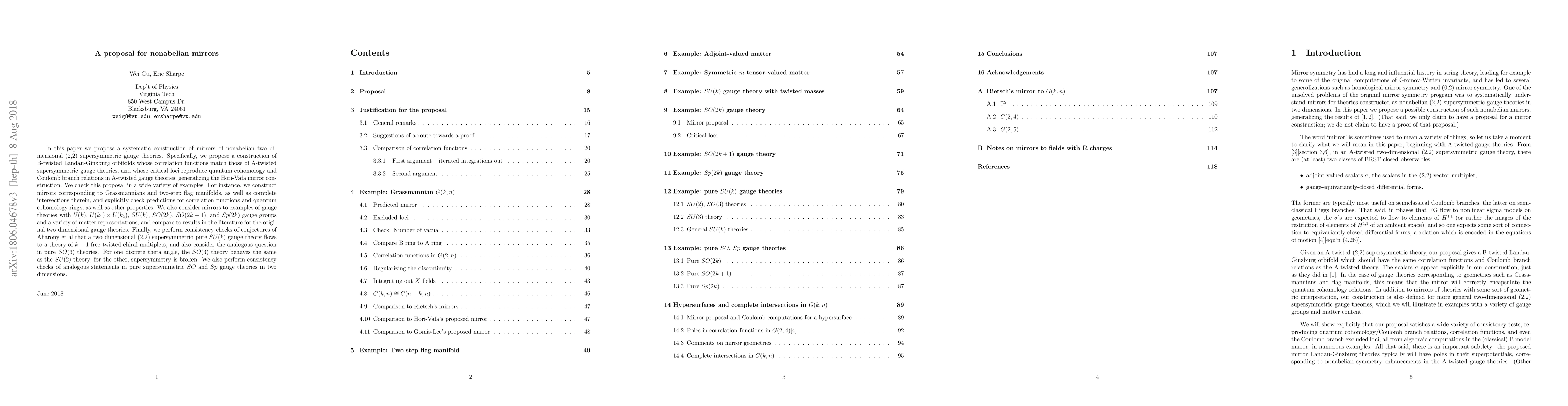 In this paper we propose a systematic construction of mirrors of nonabelian two dimensional (2,2) supersymmetric gauge theories. Specifically, we propose a construction of B-twisted Landau-Ginzburg orbifolds whose correlation functions match those of A-twisted supersymmetric gauge theories, and whose critical loci reproduce quantum cohomology and Coulomb branch relations in A-twisted gauge theories, generalizing the Hori-Vafa mirror construction. We check this proposal in a wide variety of examples. For instance, we construct mirrors corresponding to Grassmannians and two-step flag manifolds, as well as complete intersections therein, and explicitly check predictions for correlation functions and quantum cohomology rings, as well as other properties. We also consider mirrors to examples of gauge theories with U(k), U(k1) x U(k2), SU(k), SO(2k), SO(2k+1), and Sp(2k) gauge groups and a variety of matter representations, and compare to results in the literature for the original two dimensional gauge theories. Finally, we perform consistency checks of conjectures of Aharony et al that a two dimensional (2,2) supersymmetric pure SU(k) gauge theory flows to a theory of k-1 free twisted chiral multiplets, and also consider the analogous question in pure SO(3) theories. For one discrete theta angle, the SO(3) theory behaves the same as the SU(2) theory; for the other, supersymmetry is broken. We also perform consistency checks of analogous statements in pure supersymmetric SO and Sp gauge theories in two dimensions.