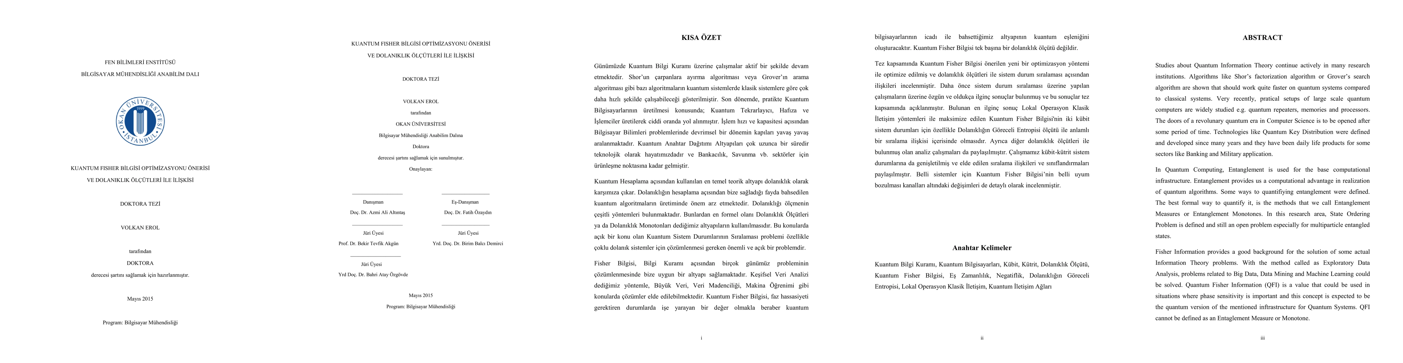Studies about Quantum Information Theory continue actively in many research institutions. Very recently, pratical setups of large scale quantum computers are widely studied e.g. quantum repeaters, memories and processors. Entanglement provides us a computational advantage in realization of quantum algorithms. Some ways to quantifiying entanglement were defined. The best formal way to quantify it, is the methods that we call Entanglement Measures or Entanglement Monotones. In this research area, State Ordering Problem is defined and still an open problem especially for multiparticle entangled states. Fisher Information provides a good background for the solution of some actual Information Theory problems. Quantum Fisher Information (QFI) is a value that could be used in situations where phase sensitivity is important and this concept is expected to be the quantum version of the mentioned inftrastructure for Quantum Systems. QFI cannot be defined as an Entaglement Measure or Monotone. In the scope of this thesis, a new optimization technique is proposed for optimizing QFI and thanks to this optimization method, the ordering relation between QFI and entanglement measures is studied. Based on the studies made in the area of quantum state ordering, new and interesting analysis results are found and reported. The main important and interesting result achieved is that for two qubit quantum states, QFI maximized under Local Operation and Classical Communication has an interesting ordering relation with entanglement measures especially with Relative Entropy of Entanglement. Our study is extended for the qubit-qutrit systems and ordering relations and classification results are presented. For some quantum systems, the changes in QFI under decoherence channels are also considered.