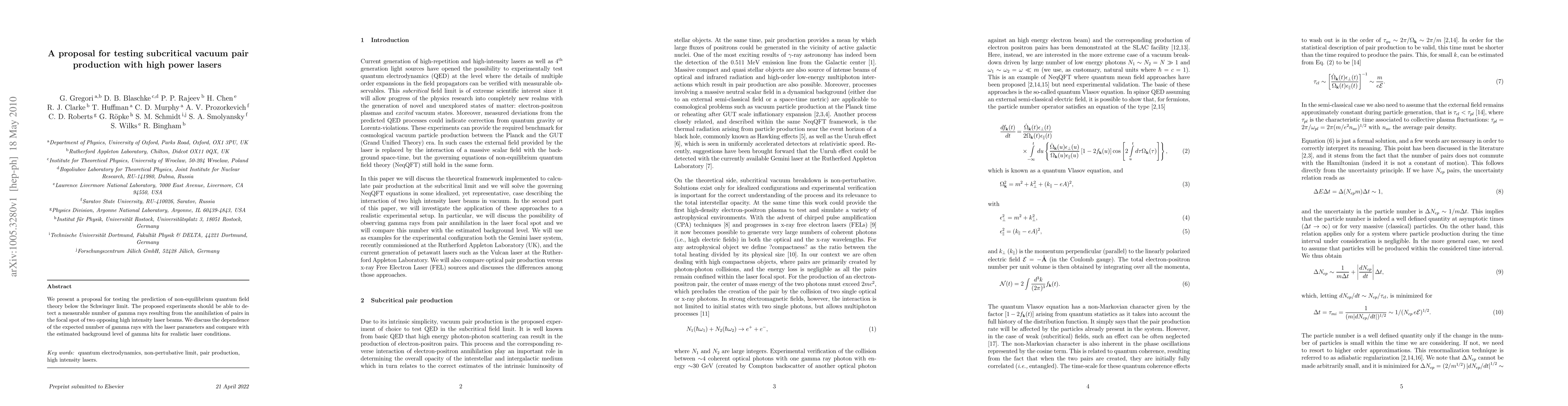 We present a proposal for testing the prediction of non-equilibrium quantum field theory below the Schwinger limit. The proposed experiments should be able to detect a measurable number of gamma rays resulting from the annihilation of pairs in the focal spot of two opposing high intensity laser beams. We discuss the dependence of the expected number of gamma rays with the laser parameters and compare with the estimated background level of gamma hits for realistic laser conditions.