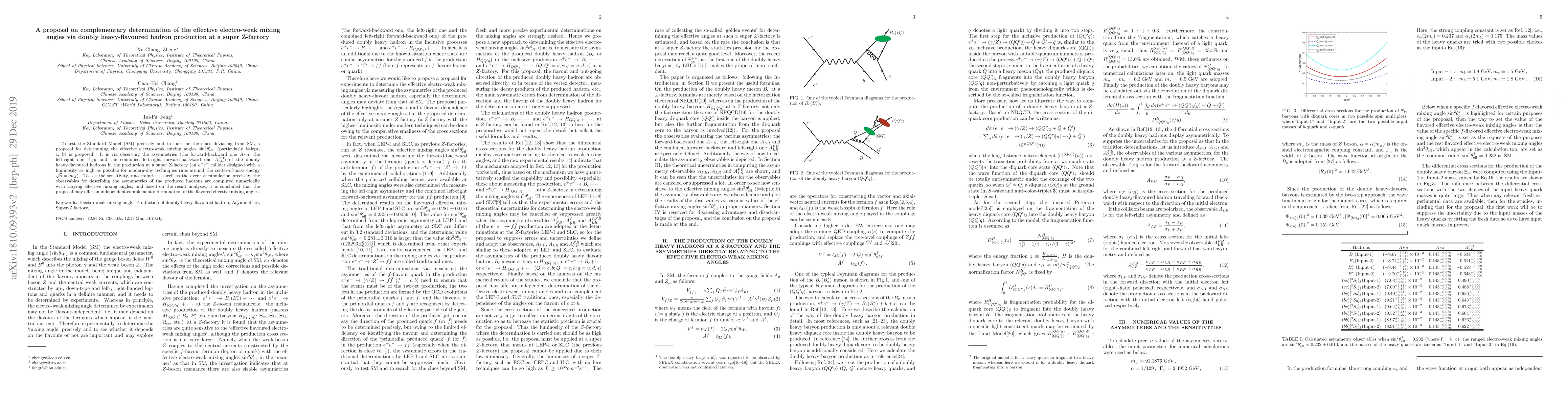 This paper proposes a method to determine the effective electro-weak mixing angles ${\rm sin^2\theta_{eff}^f\;(f=c,b)}$ at a super Z-factory, an $e^+e^-$ collider with high luminosity. The key is measuring asymmetries of doubly heavy-flavored hadrons to complement the final determination of ${\rm sin^2\theta_W^f\;(f=c,b)}$, avoiding errors from missing identification and thrust axis determination seen in earlier experiments.