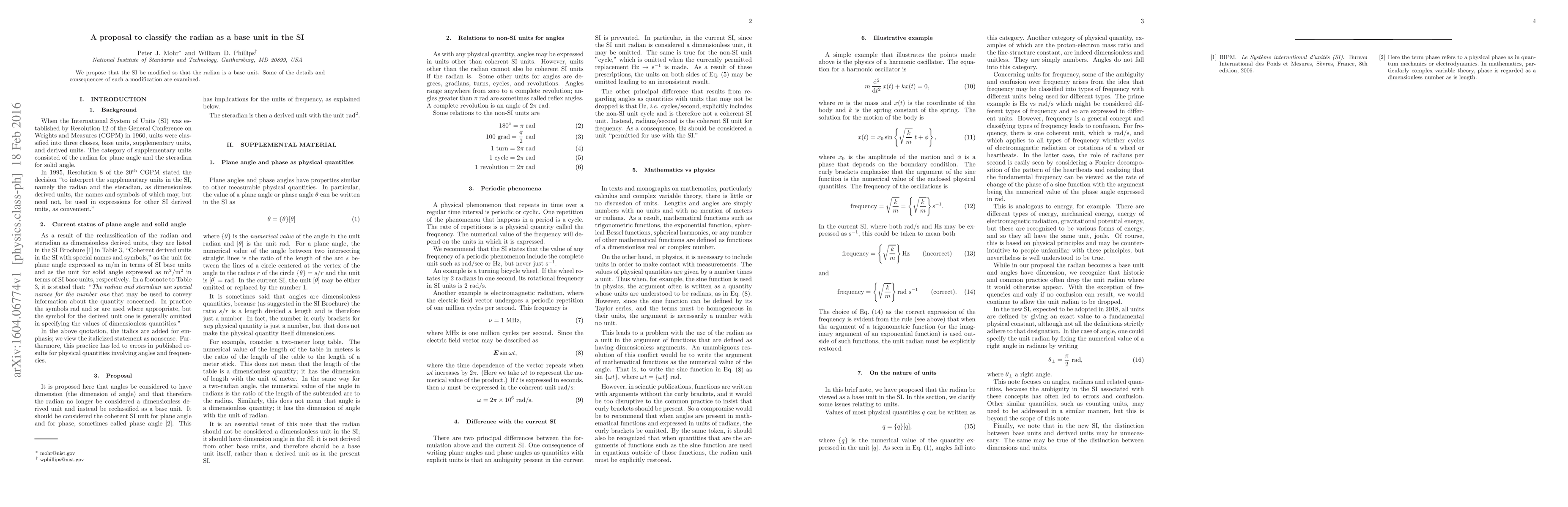 We propose that the SI be modified so that the radian is a base unit. Some of the details and consequences of such a modification are examined.
