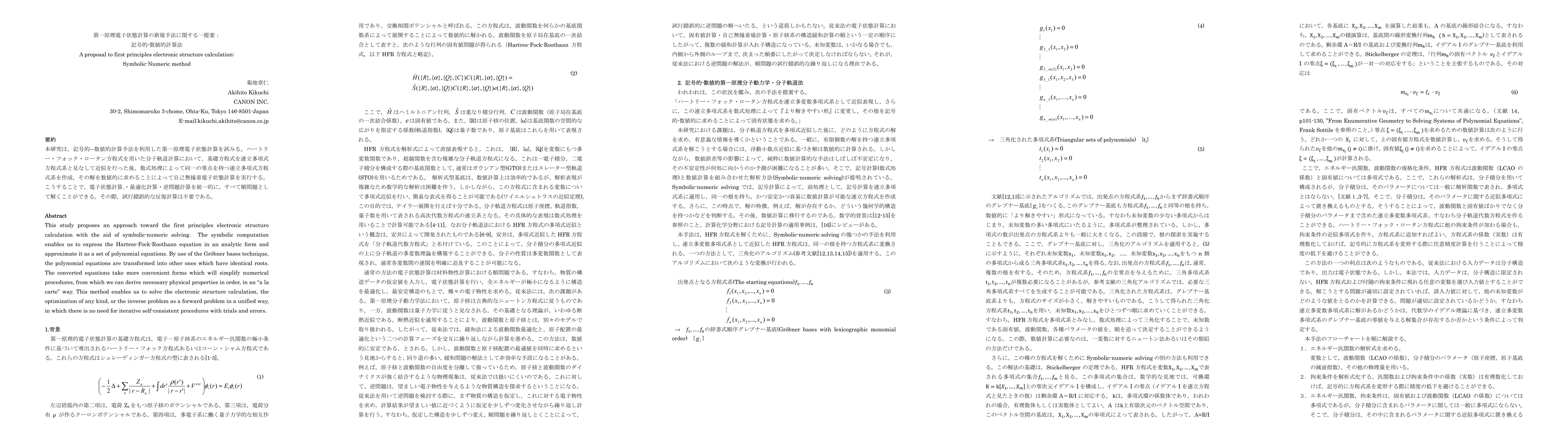 This paper proposes a symbolic-numeric method for first principles electronic structure calculations, transforming complex equations into polynomial forms using Grobner bases to simplify numerical procedures and derive physical properties without iterative self-consistent methods. The approach aims to solve electronic structure calculations and optimizations in a unified, efficient manner.