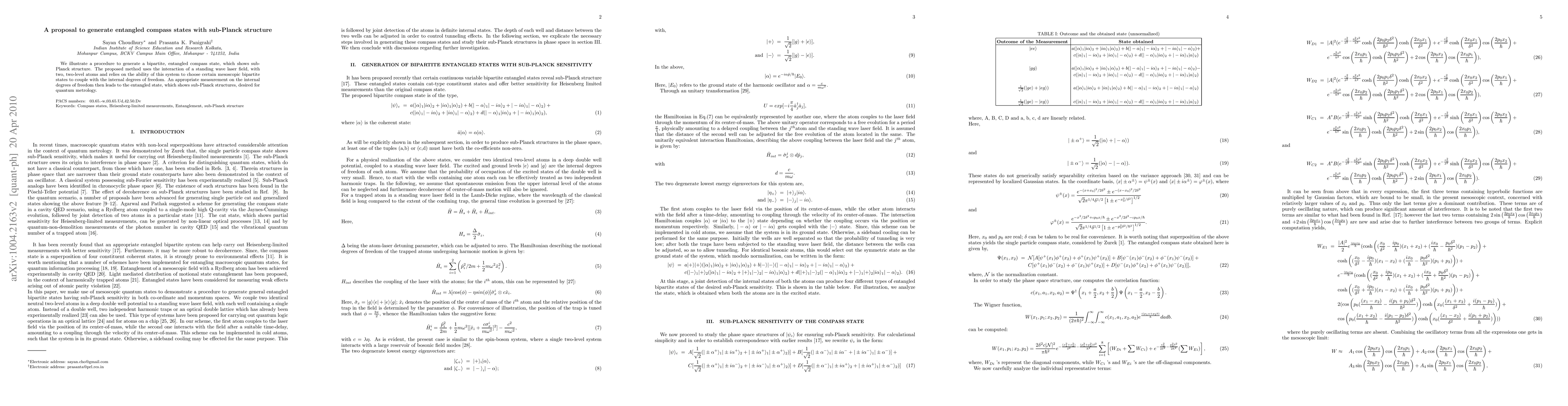 We illustrate a procedure to generate a bipartite, entangled compass state, which shows sub-Planck structure. The proposed method uses the interaction of a standing wave laser field, with two, two-level atoms and relies on the ability of this system to choose certain mesoscopic bipartite states to couple with the internal degrees of freedom. An appropriate measurement on the internal degrees of freedom then leads to the entangled state, which shows sub-Planck structures, desired for quantum metrology.