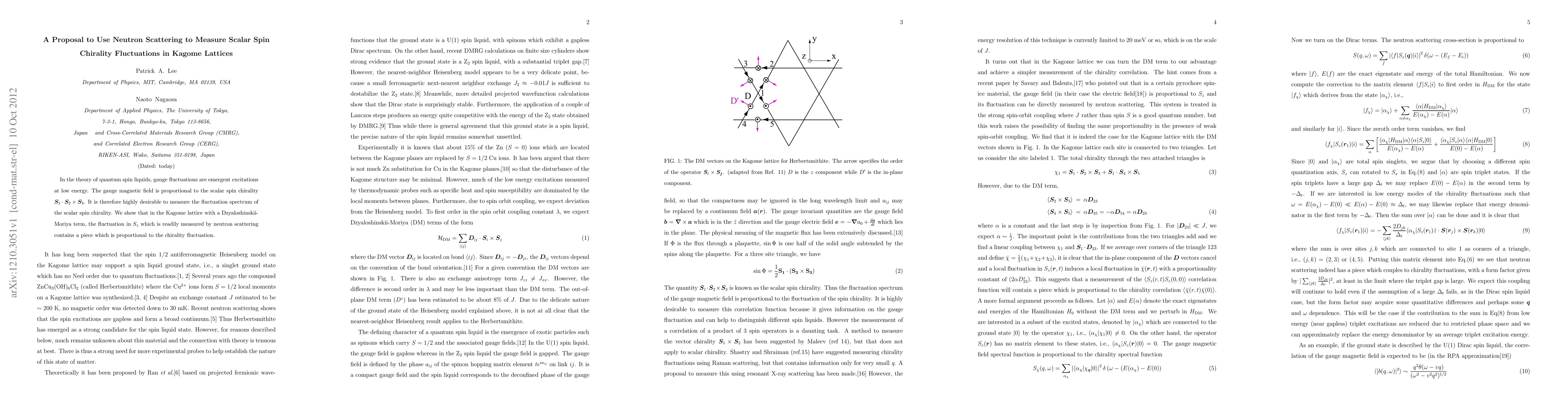 In the theory of quantum spin liquids, gauge fluctuations are emergent excitations at low energy. The gauge magnetic field is proportional to the scalar spin chirality, S1.(S2xS3). It is therefore highly desirable to measure the fluctuation spectrum of the scalar spin chirality. We show that in the Kagome lattice with a Dzyaloshinskii-Moriya term, the fluctuation in Sz which is readily measured by neutron scattering contains a piece which is proportional to the chirality fluctuation.