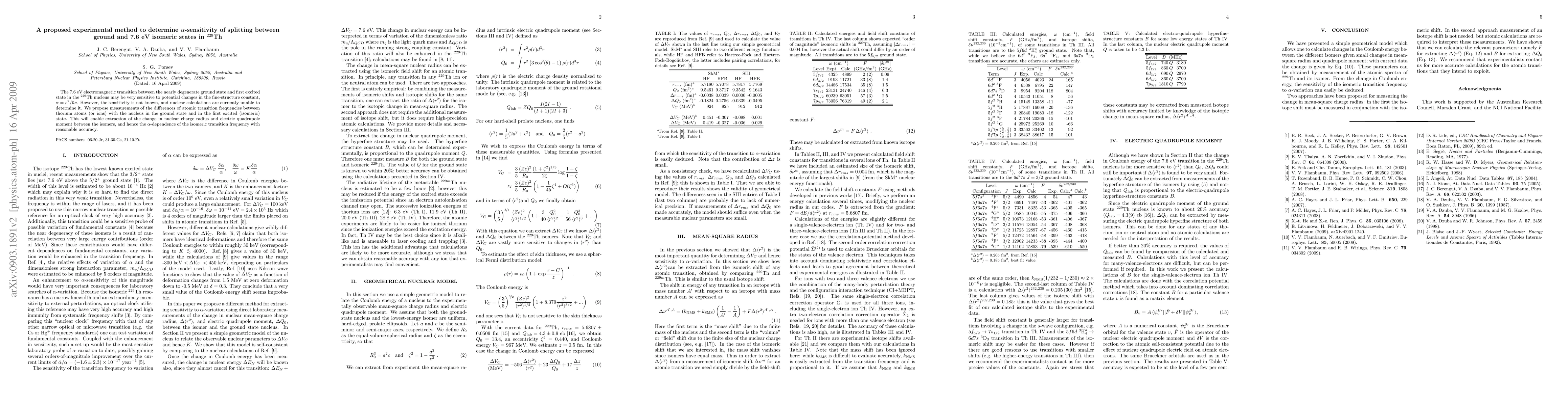This paper proposes a novel experimental method to measure the $\alpha$-sensitivity of the 7.6 eV transition between ground and isomeric states in Th-229, aiming to determine the nuclear charge radius and electric quadrupole moment changes, thereby assessing the fine-structure constant's impact on the isomeric transition frequency.