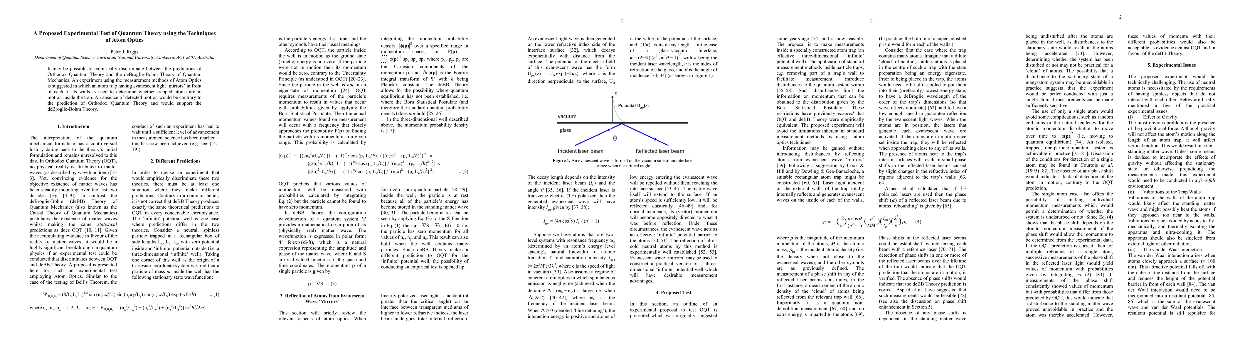It may be possible to empirically discriminate between the predictions of Orthodox Quantum Theory and the deBroglie-Bohm Theory of Quantum Mechanics. An experiment using the measurement methods of Atom Optics is suggested in which an atom trap having evanescent light mirrors in front of each of its walls is used to determine whether trapped atoms are in motion inside the trap. An absence of detected motion would be contrary to the prediction of Orthodox Quantum Theory and would support the deBroglie-Bohm Theory.