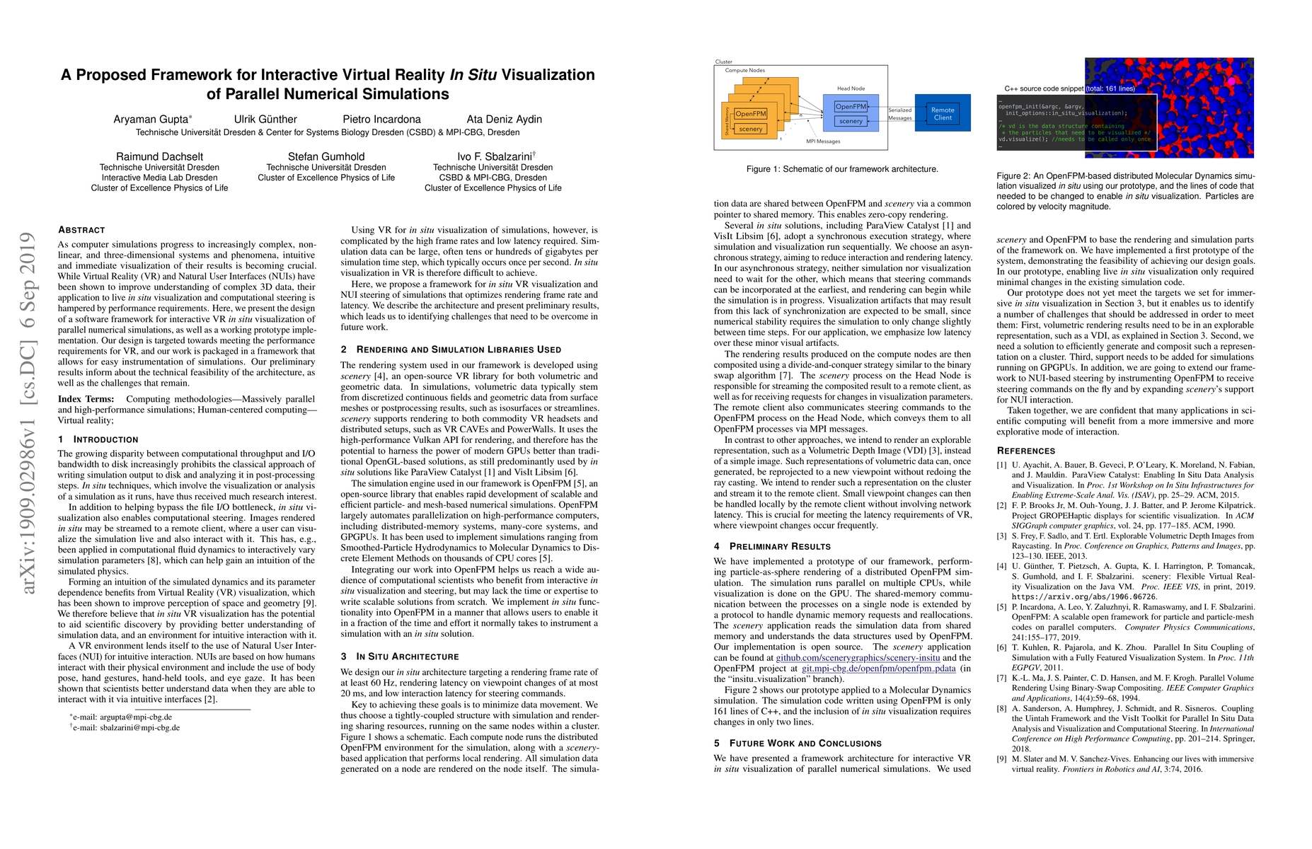 This paper proposes a framework for interactive VR in situ visualization of parallel numerical simulations, aiming to meet VR performance requirements. The framework includes a working prototype, demonstrating technical feasibility while highlighting remaining challenges.