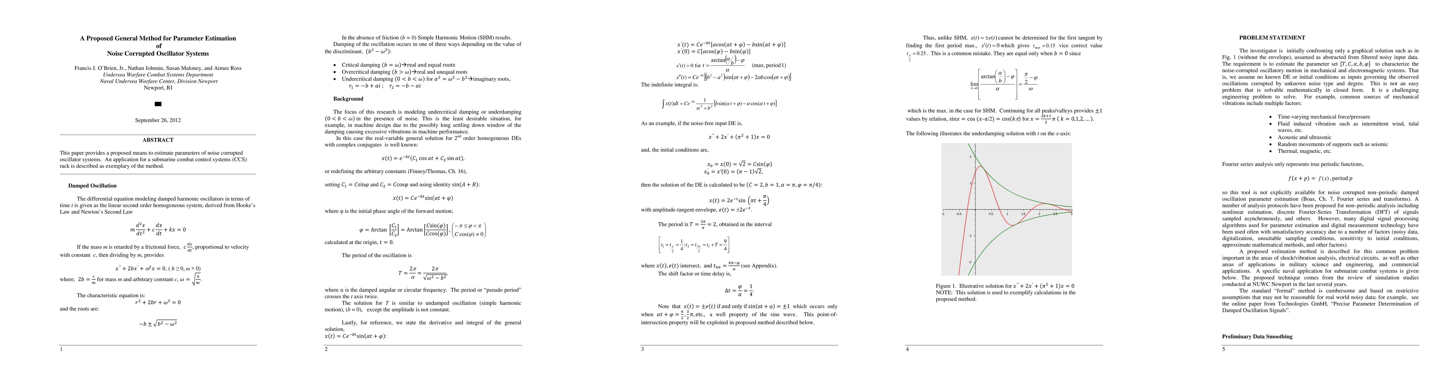 Researchers propose a method to estimate parameters of noisy oscillator systems, with applications in submarine combat control systems, and provide an example using a CCS rack.