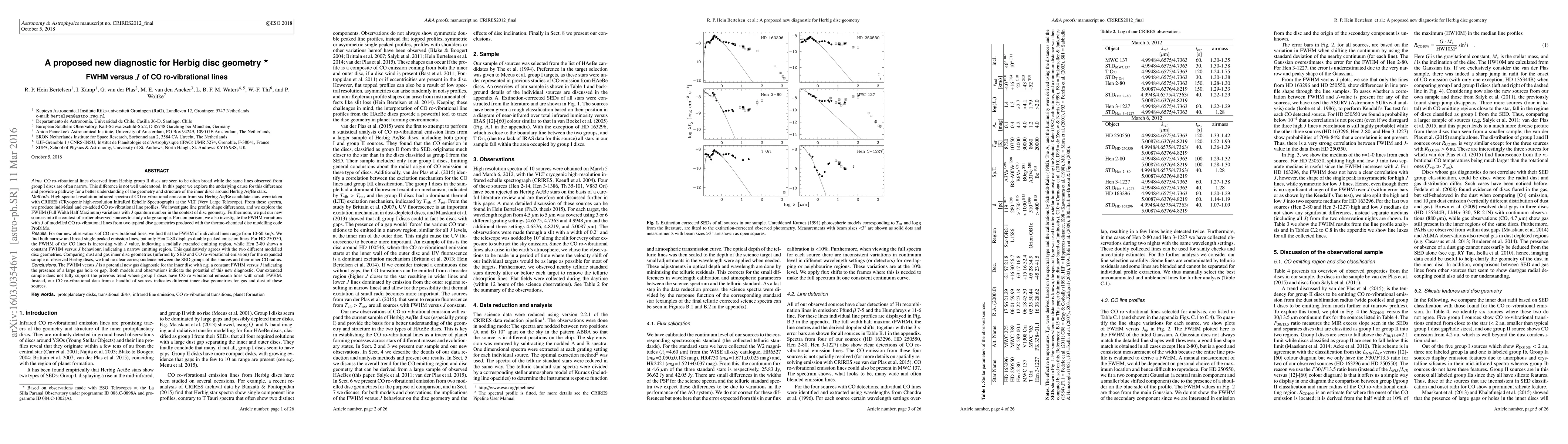 Aims. CO ro-vibrational lines observed from Herbig group II discs are seen to be often broad while the same lines observed from group I discs are often narrow. This difference is not well understood. In this paper we explore the underlying cause for this difference and provide a pathway for a better understanding of the geometry and structure of the inner discs around Herbig Ae/Be stars. Methods. High-spectral-resolution infrared spectra of CO ro-vibrational emission from six Herbig Ae/Be candidate stars were taken with CRIRES (CRyogenic high-resolution InfraRed Echelle Spectrograph) at the VLT (Very Large Telescope). From these spectra, we produce individual and co-added CO ro-vibrational line profiles. We investigate line profile shape differences, and we explore the FWHM (Full Width Half Maximum) variations with J quantum number in the context of disc geometry. Furthermore, we put our new sources into the context of earlier observed sources to study a large sample. For comparison, we also investigate the FWHM variations with J of modelled CO ro-vibrational lines from two typical disc geometries produced with the thermo-chemical disc modelling code ProDiMo. Results. - abbreviated - Comparing dust and gas inner disc geometries (inferred by SED and CO ro-vibrational emission) for the expanded sample of observed Herbig discs, we find no clear correspondence between the SED groups of the sources and their inner CO radius. Conclusions. The FWHM versus J is a potential new gas diagnostic for the inner disc with e.g. a constant FWHM versus J indicating the presence of a large gas hole or gap. Both models and observations indicate the potential of this new diagnostic. - abbreviated -