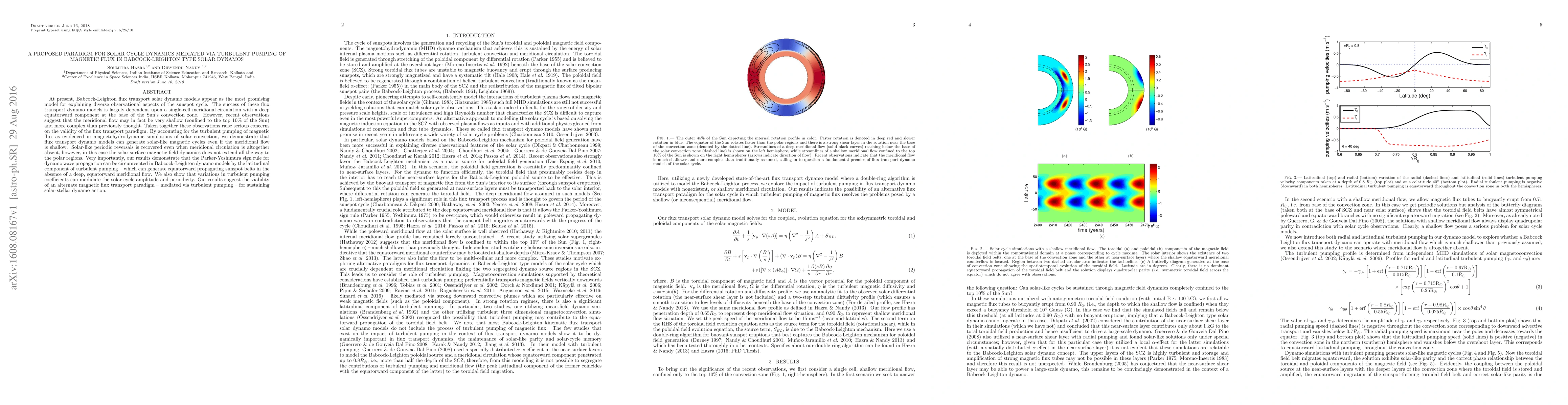 This paper proposes a new paradigm for solar cycle dynamics based on turbulent pumping of magnetic flux in Babcock-Leighton solar dynamos, demonstrating that shallow meridional flow can still generate solar-like magnetic cycles. The study shows that turbulent pumping can circumvent the Parker-Yoshimura sign rule, offering an alternative mechanism for sunspot belt propagation.