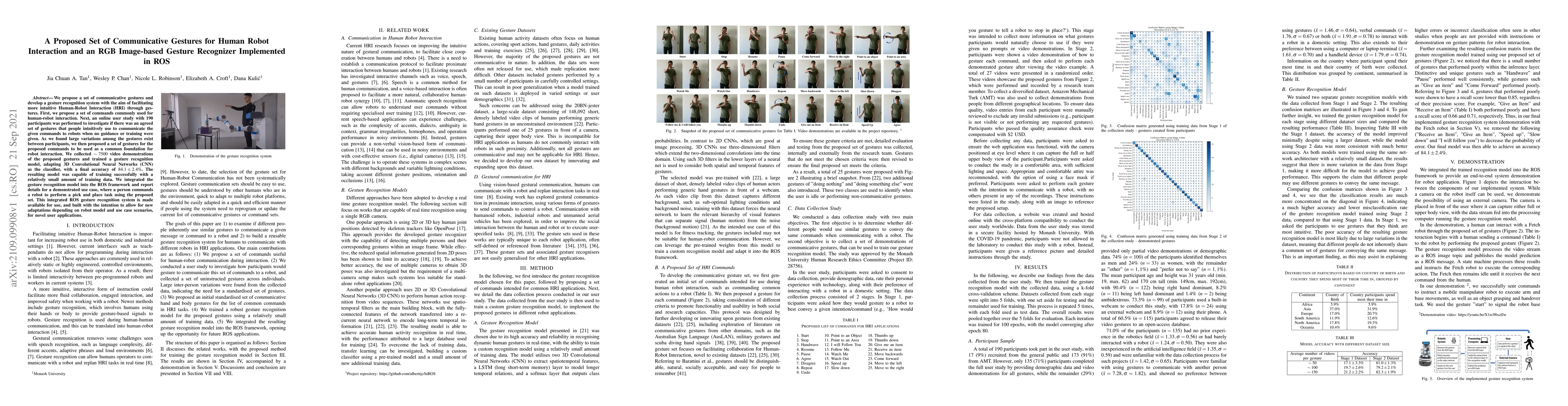 This paper proposes a standardized set of communicative gestures for human-robot interaction and develops an RGB image-based gesture recognition system using 3D CNNs, achieving 84.1% accuracy. The system is integrated into the ROS framework for practical applications.