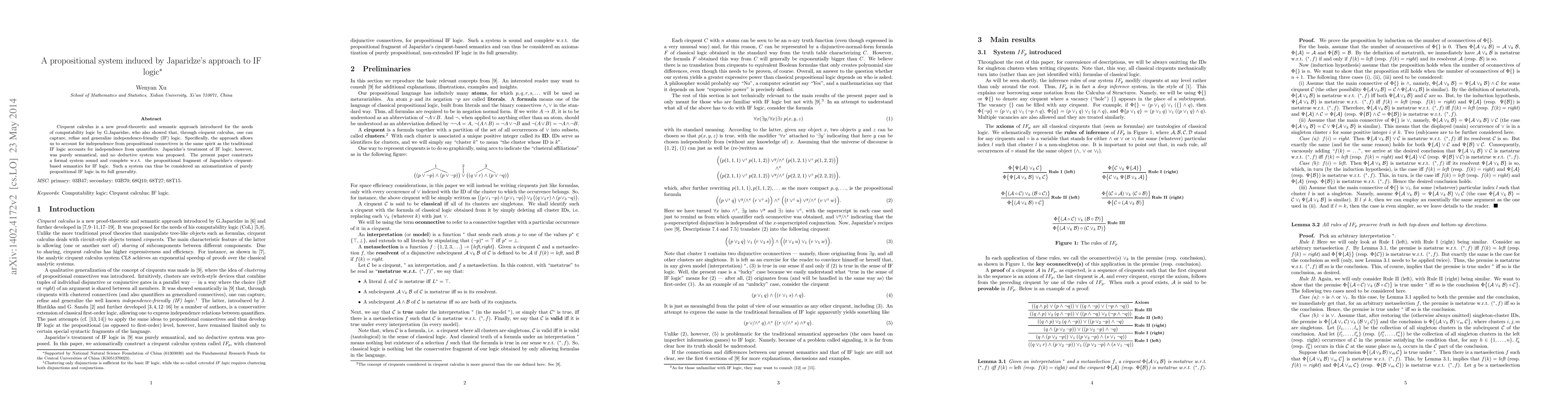This paper constructs a formal, sound, and complete propositional system based on Japaridze's cirquent calculus to axiomatize the propositional fragment of independence-friendly (IF) logic, filling the gap left by Japaridze's purely semantical treatment.