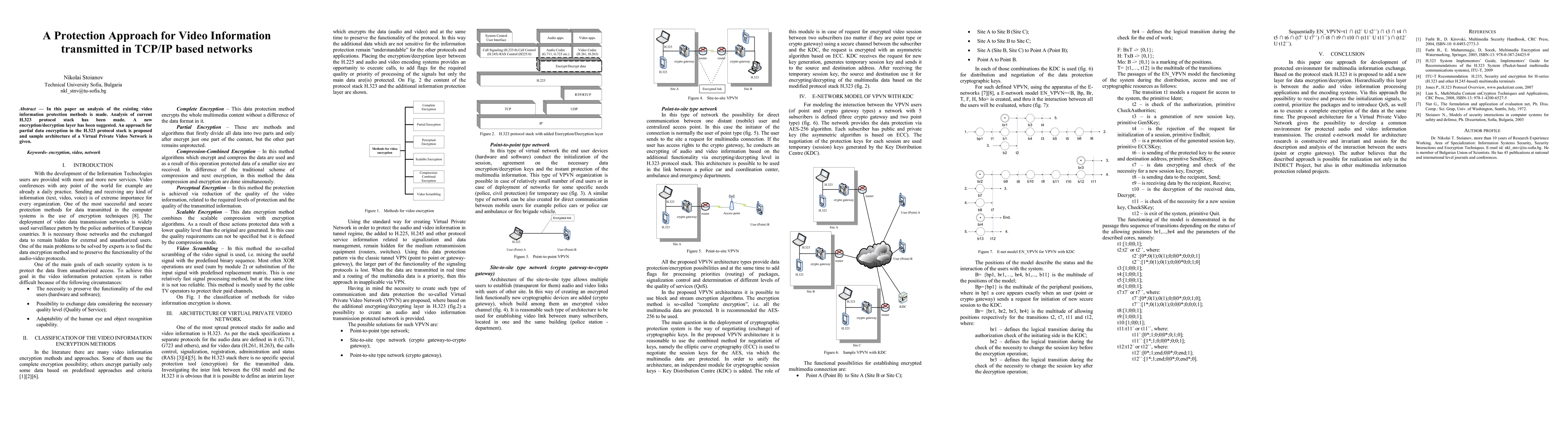 In this paper an analysis of the existing video information protection methods is made. Analysis of current H.323 protocol stack has been made. A new encryption/decryption layer has been suggested. An approach for partial data encryption in the H.323 protocol stack is proposed and sample architecture of a Virtual Private Video Network is given.