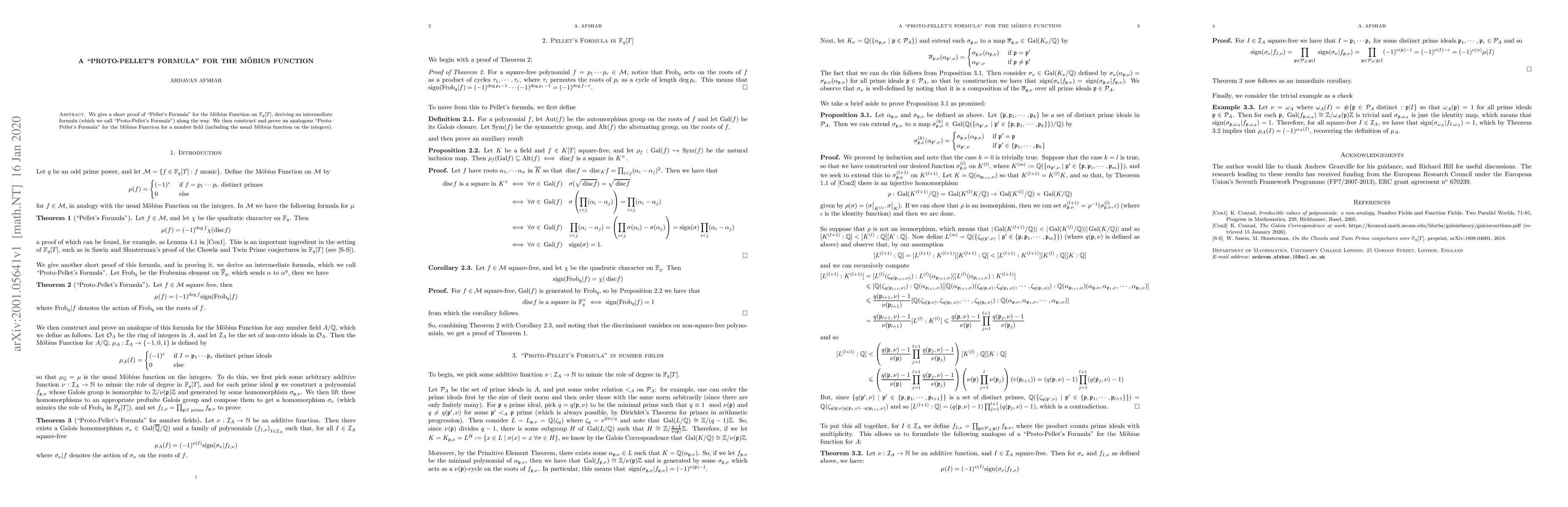 The paper provides a short proof of Pellet's Formula for the Möbius Function on Fq[T], deriving an intermediate formula called 'Proto-Pellet's Formula' along the way. It then constructs and proves an analogous 'Proto-Pellet's Formula' for the Möbius Function for a number field, including the usual Möbius function on the integers.