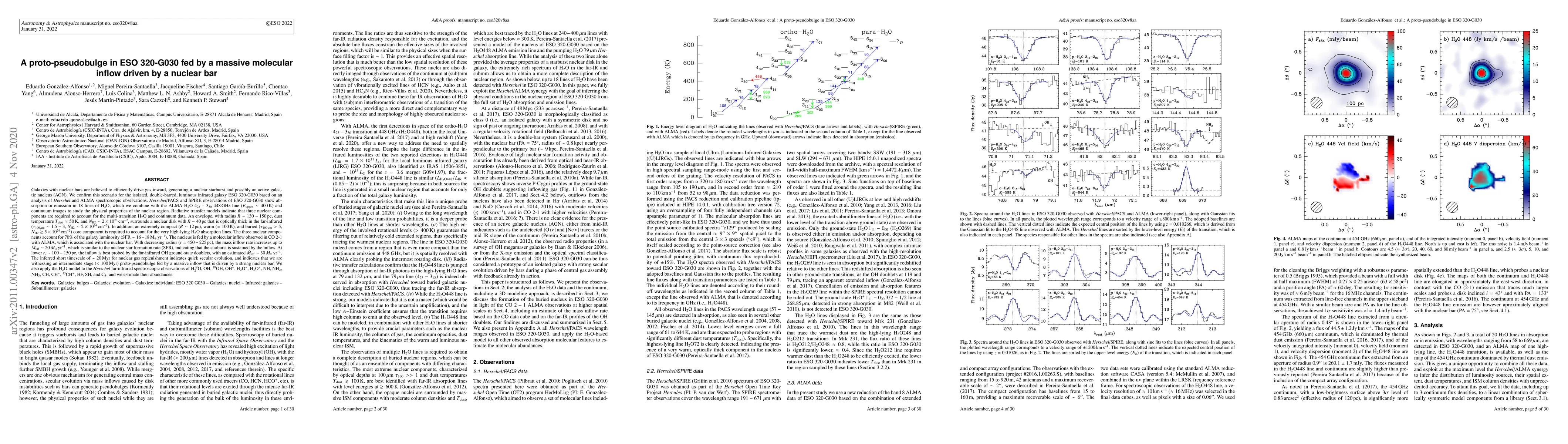 This paper investigates ESO 320-G030, revealing a proto-pseudobulge fueled by a massive molecular inflow driven by a nuclear bar. Observations show three nuclear components, with a starburst sustained by gas inflows, indicating rapid secular evolution.