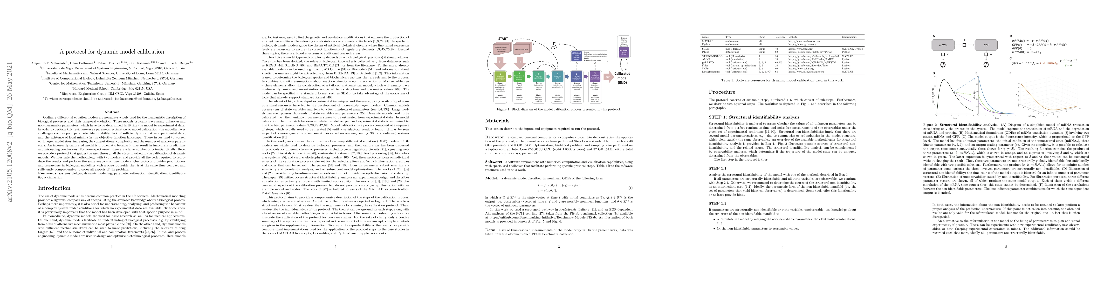 Ordinary differential equation models are nowadays widely used for the mechanistic description of biological processes and their temporal evolution. These models typically have many unknown and non-measurable parameters, which have to be determined by fitting the model to experimental data. In order to perform this task, known as parameter estimation or model calibration, the modeller faces challenges such as poor parameter identifiability, lack of sufficiently informative experimental data, and the existence of local minima in the objective function landscape. These issues tend to worsen with larger model sizes, increasing the computational complexity and the number of unknown parameters. An incorrectly calibrated model is problematic because it may result in inaccurate predictions and misleading conclusions. For non-expert users, there are a large number of potential pitfalls. Here, we provide a protocol that guides the user through all the steps involved in the calibration of dynamic models. We illustrate the methodology with two models, and provide all the code required to reproduce the results and perform the same analysis on new models. Our protocol provides practitioners and researchers in biological modelling with a one-stop guide that is at the same time compact and sufficiently comprehensive to cover all aspects of the problem.