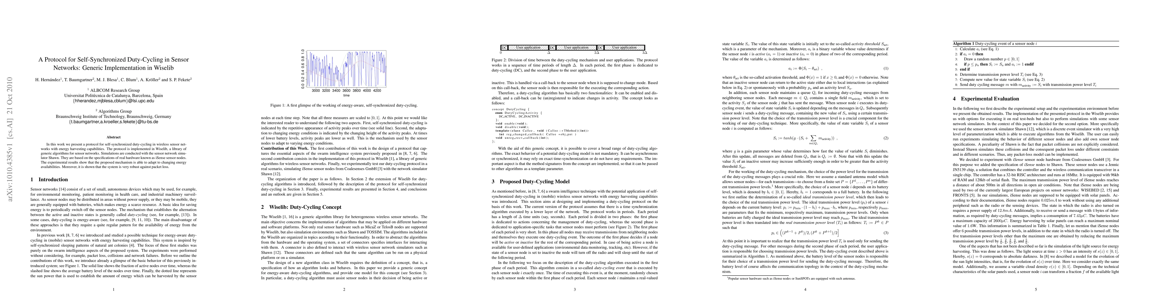 This paper introduces a self-synchronized duty-cycling protocol for energy-harvesting wireless sensor networks implemented in Wiselib, demonstrating adaptability to varying energy levels and robustness against packet loss through simulations using the Shawn simulator and real iSense hardware.