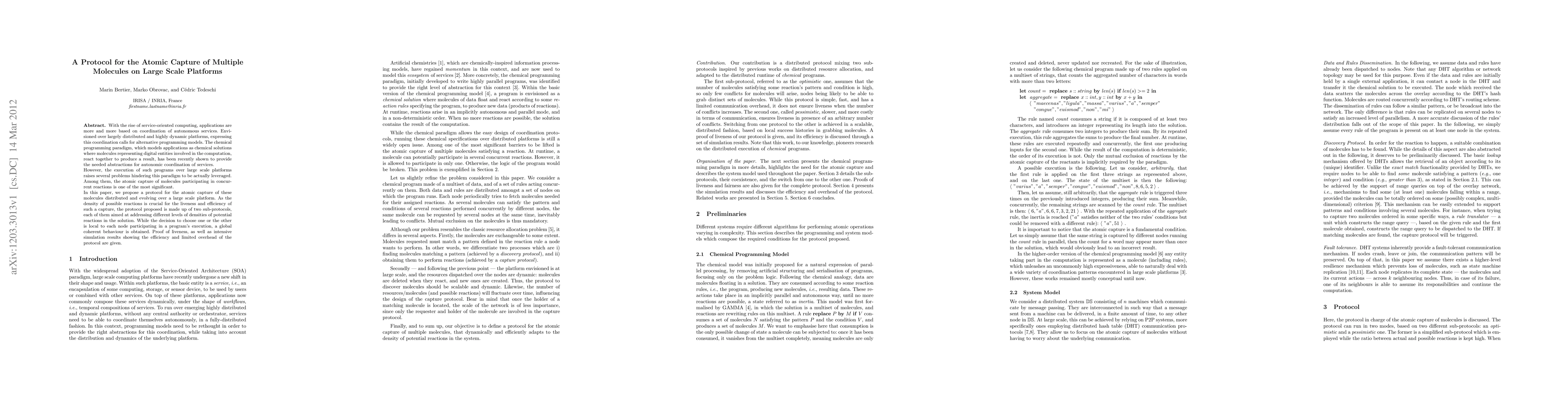 A protocol for capturing multiple molecules at large scale has been proposed to enable autonomic coordination of services in a chemical programming paradigm. The protocol addresses the challenge of atomic capture with two sub-protocols that balance local and global decision-making.