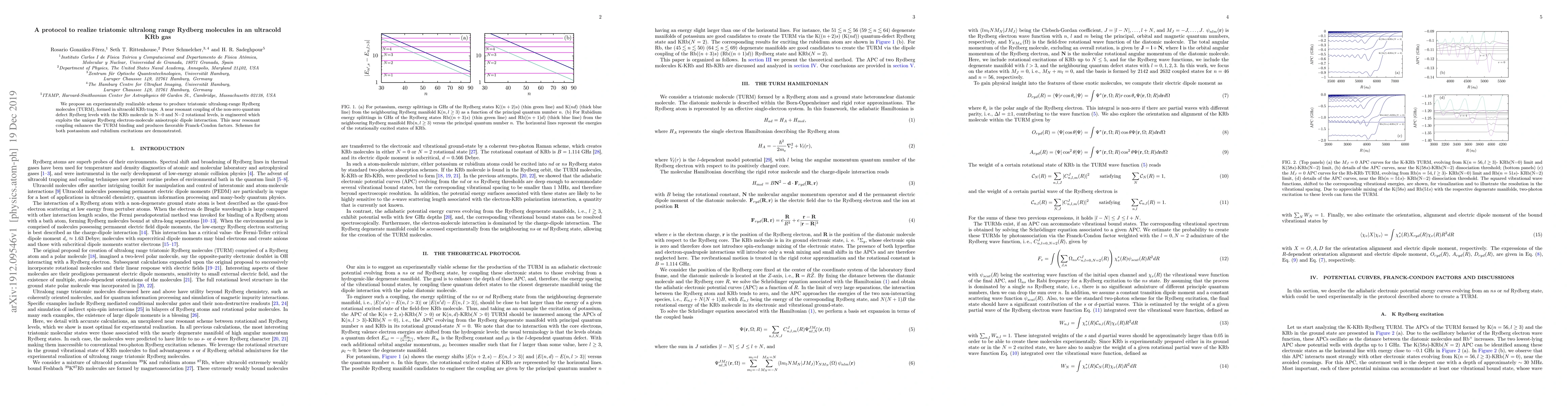 We propose an experimentally realizable scheme to produce triatomic ultralong-range Rydberg molecules (TURM), formed in ultracold KRb traps. A near resonant coupling of the non-zero quantum defect Rydberg levels with the KRb molecule in N=0 and N=2 rotational levels, is engineered which exploits the unique Rydberg electron-molecule anisotropic dipole interaction. This near resonant coupling enhances the TURM binding and produces favorable Franck-Condon factors. Schemes for both postassium and rubidium excitations are demonstrated.