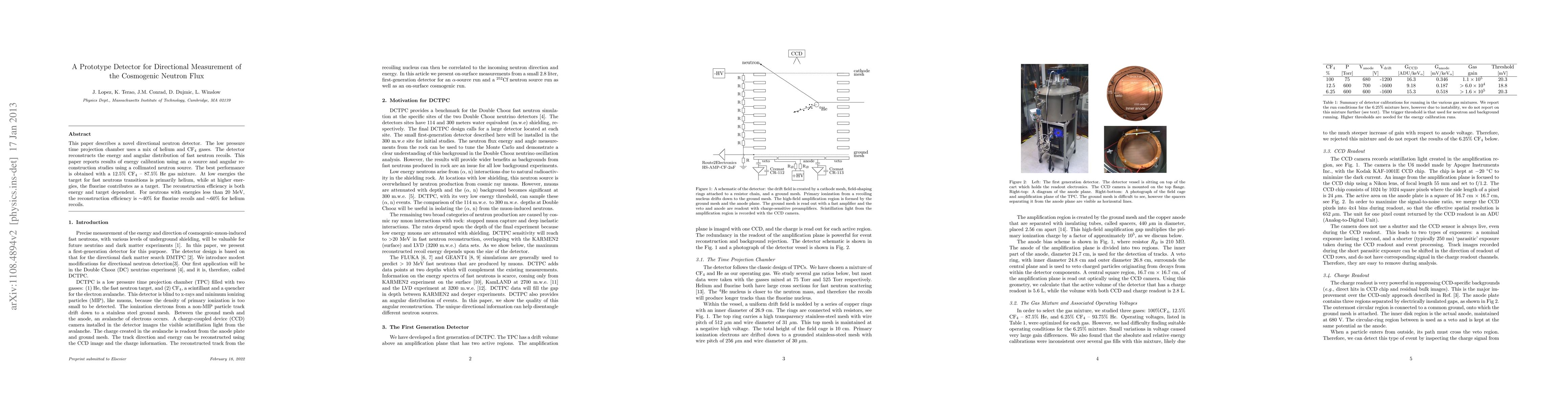 This paper describes a novel directional neutron detector prototype. The low pressure time projection chamber uses a mix of helium and CF4 gases. The detector reconstructs the energy and angular distribution of fast neutron recoils. This paper reports results of energy calibration using an alpha source and angular reconstruction studies using a collimated neutron source. The best performance is obtained with a 12.5% CF4 gas mixture. At low energies the target for fast neutrons transitions is primarily helium, while at higher energies, the fluorine contributes as a target. The reconstruction efficiency is both energy and target dependent. For neutrons with energies less than 20 MeV, the reconstruction efficiency is ~40% for fluorine recoils and ~60% for helium recoils.