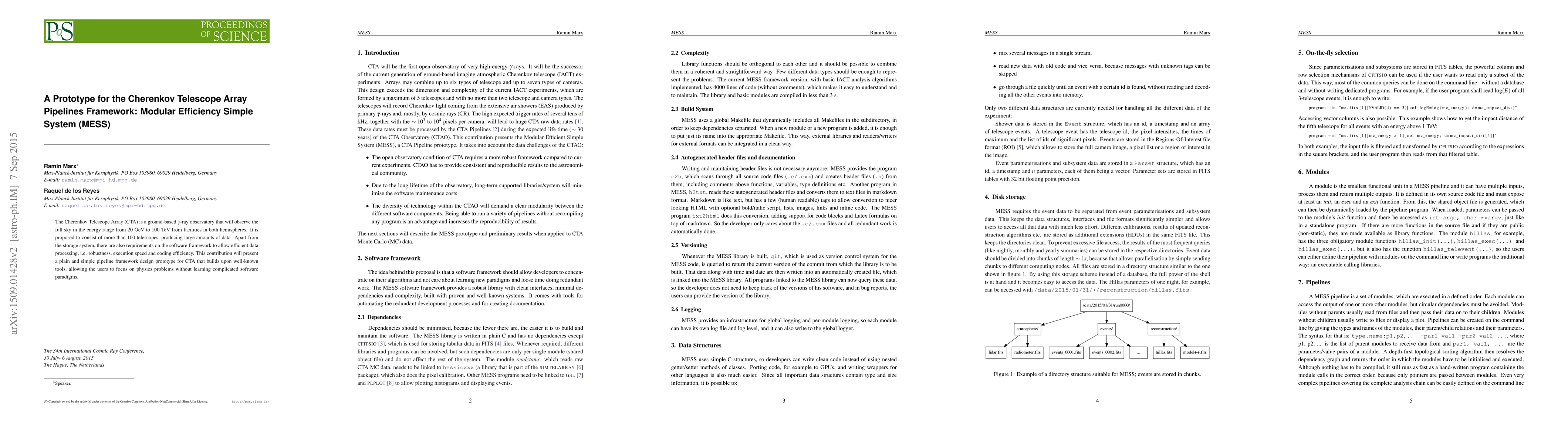 The paper introduces the Modular Efficiency Simple System (MESS) as a prototype pipeline framework for the Cherenkov Telescope Array (CTA), aiming to provide robust, fast, and efficient data processing while minimizing complexity for users. The design leverages existing tools to facilitate physics-focused work without requiring deep software expertise.