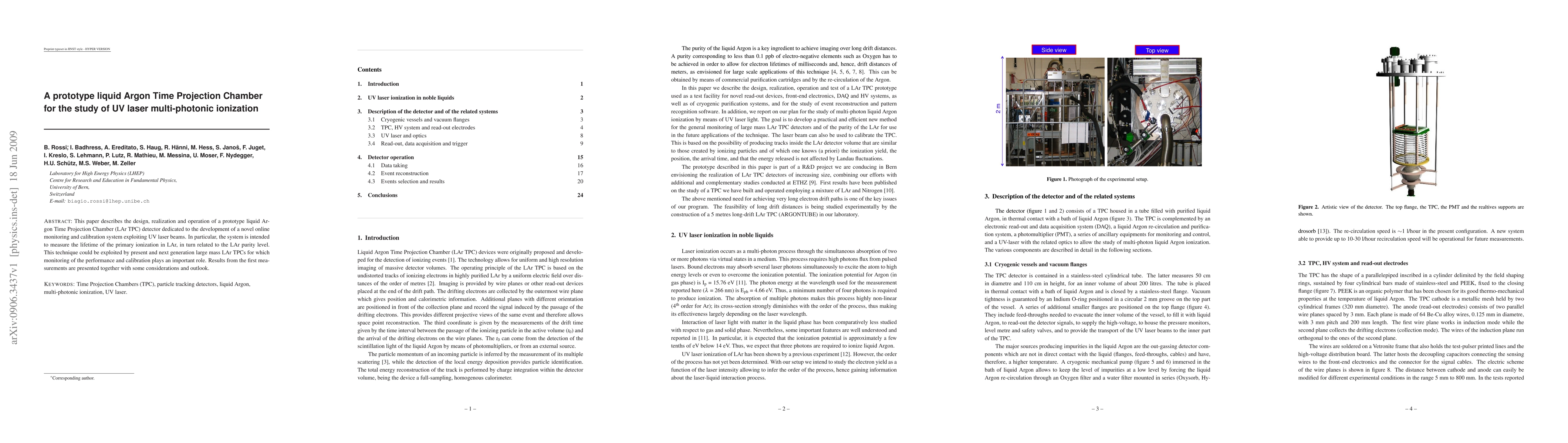 This paper presents a prototype liquid Argon Time Projection Chamber designed to study UV laser multi-photonic ionization, focusing on measuring the primary ionization lifetime to assess Argon purity. Initial results demonstrate the potential for improved monitoring and calibration in future large-scale LAr TPCs.