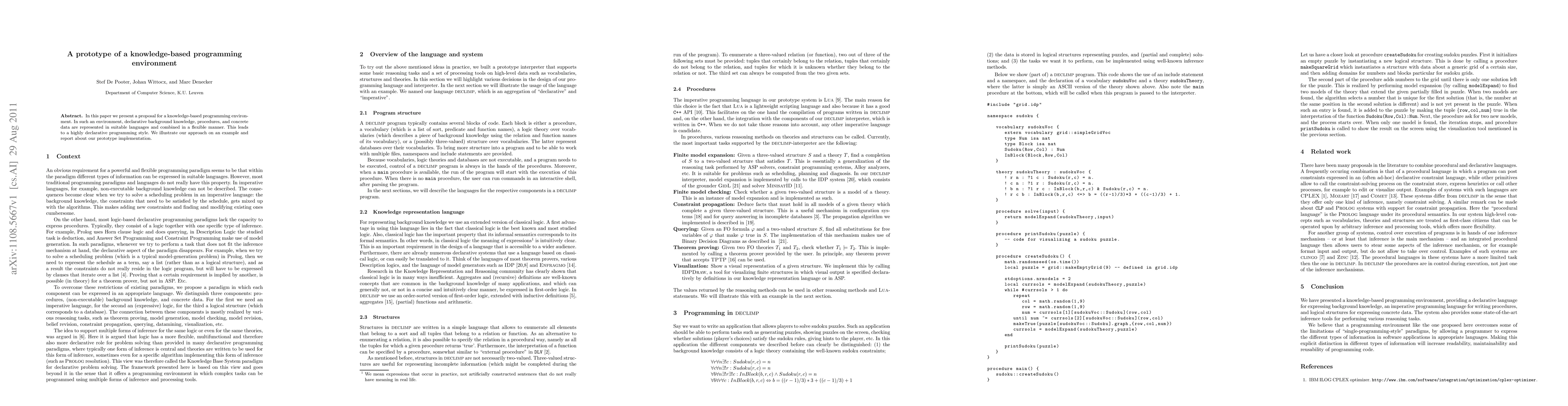 In this paper we present a proposal for a knowledge-based programming environment. In such an environment, declarative background knowledge, procedures, and concrete data are represented in suitable languages and combined in a flexible manner. This leads to a highly declarative programming style. We illustrate our approach on an example and report about our prototype implementation.