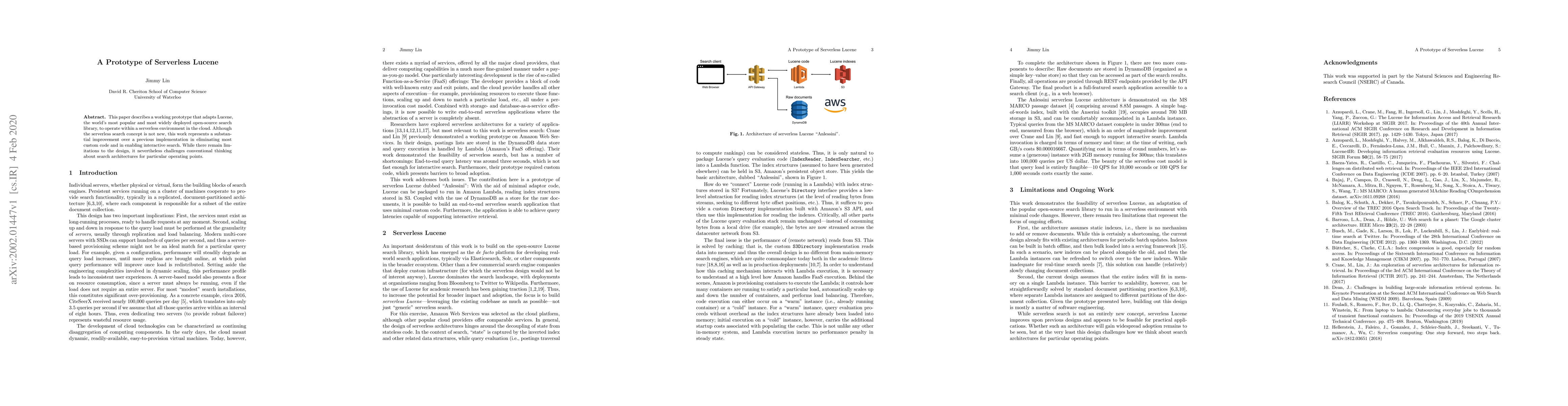 A working prototype adapts Lucene for serverless environments, improving search performance and enabling interactive searches with reduced custom code. This innovation challenges conventional search architecture thinking and presents a significant improvement over previous implementations.