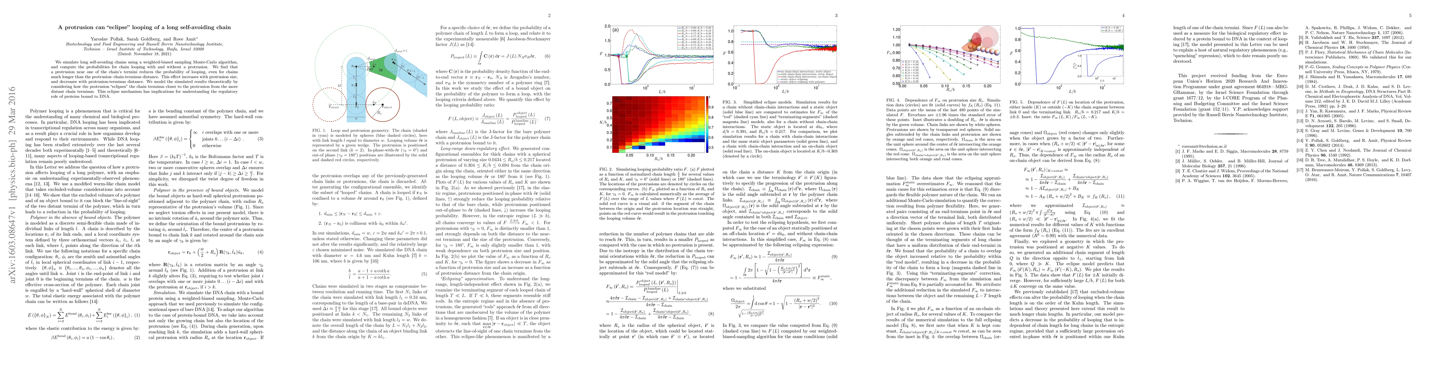 We simulate long self-avoiding chains using a weighted-biased sampling Monte-Carlo algorithm, and compute the probabilities for chain looping with and without a protrusion. We find that a protrusion near one of the chain's termini reduces the probability of looping, even for chains much longer than the protrusion-chain-terminus distance. This effect increases with protrusion size, and decreases with protrusion-terminus distance. We model the simulated results theoretically by considering how the protrusion "eclipses" the chain terminus closer to the protrusion from the more distant chain terminus. This eclipse mechanism has implications for understanding the regulatory role of proteins bound to DNA.