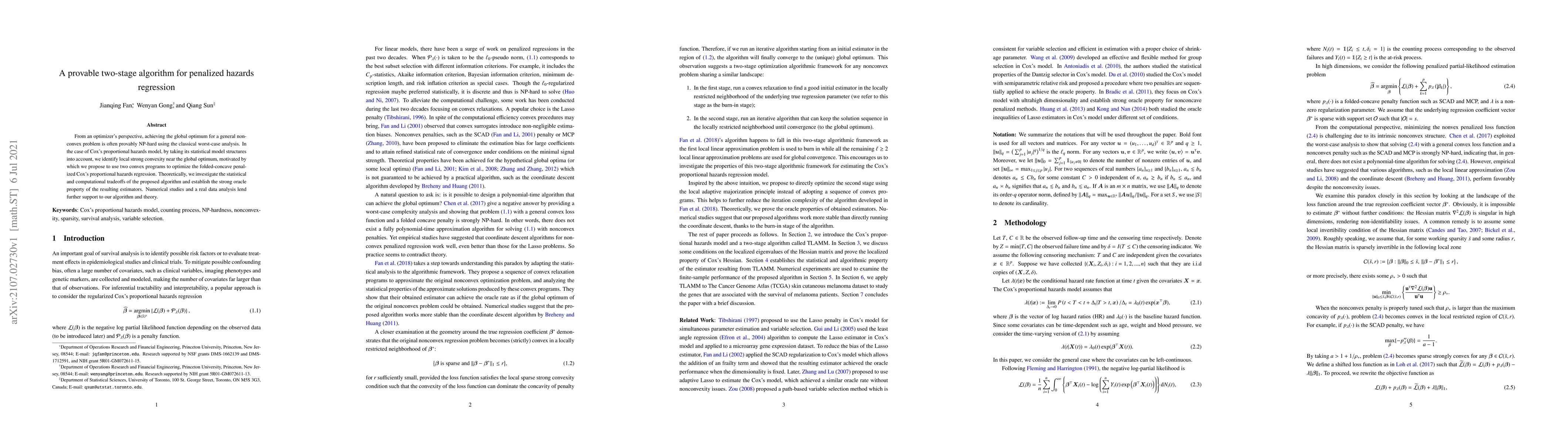 This paper proposes a two-stage algorithm for optimizing penalized Cox's proportional hazards regression, leveraging local strong convexity near the global optimum. The algorithm's statistical and computational properties are theoretically analyzed, demonstrating strong oracle properties of the estimators, which are further validated through numerical studies and real data analysis.