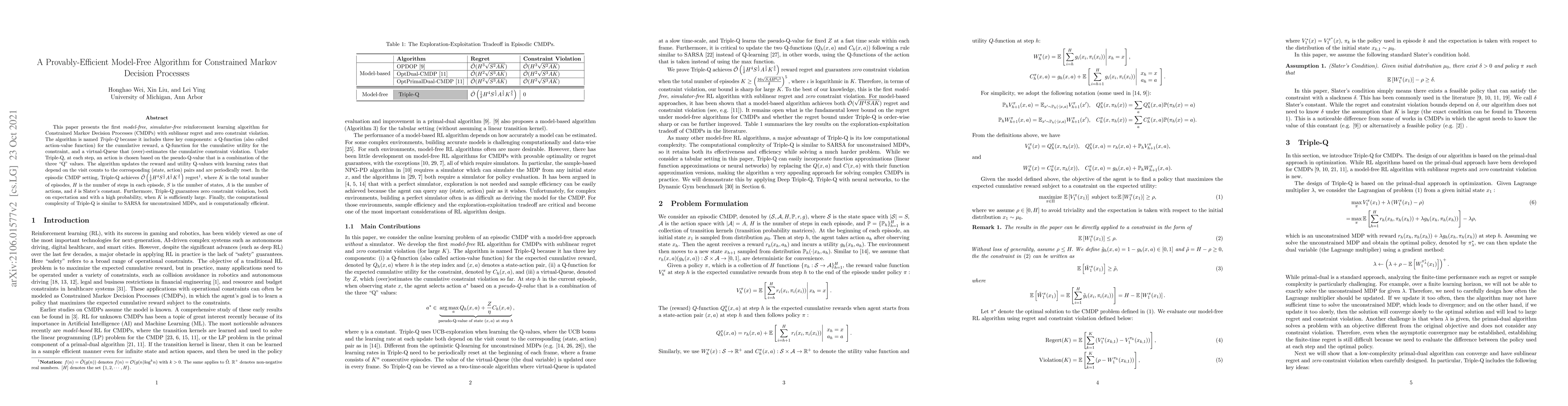 Researchers have developed a new algorithm called Triple-Q that achieves near-optimal performance in Constrained Markov Decision Processes (CMDPs) with zero constraint violation, using a model-free approach that balances reward and utility Q-values.