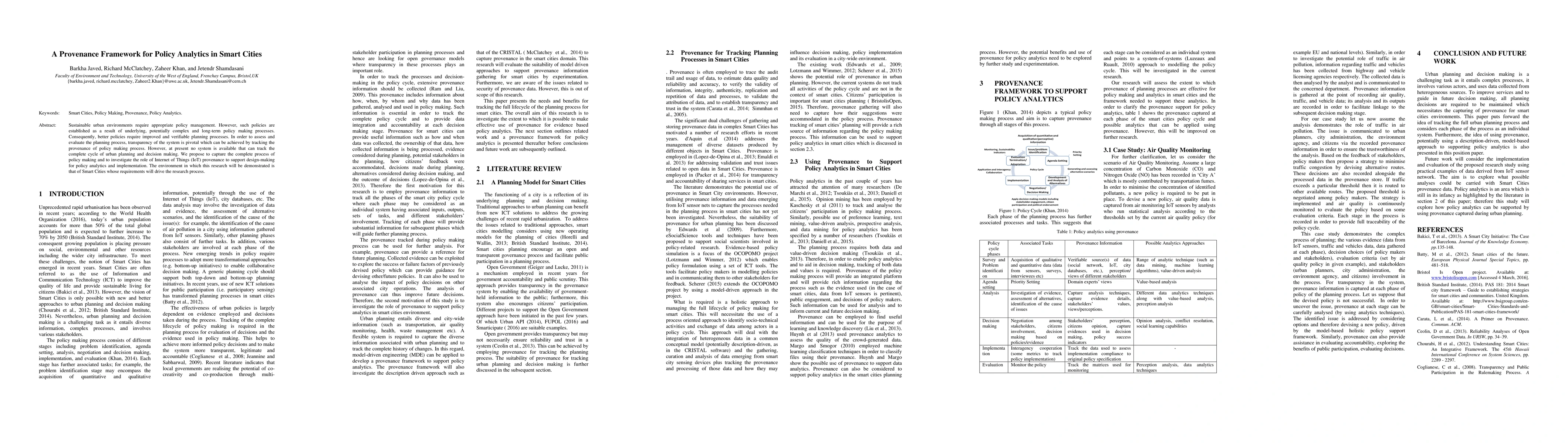 This paper proposes a framework for capturing the complete policy-making process in IoT-based smart cities to enhance transparency and verifiability. It aims to leverage IoT provenance to support policy analytics and implementation, addressing the lack of systems that track the entire urban planning and decision-making cycle.
