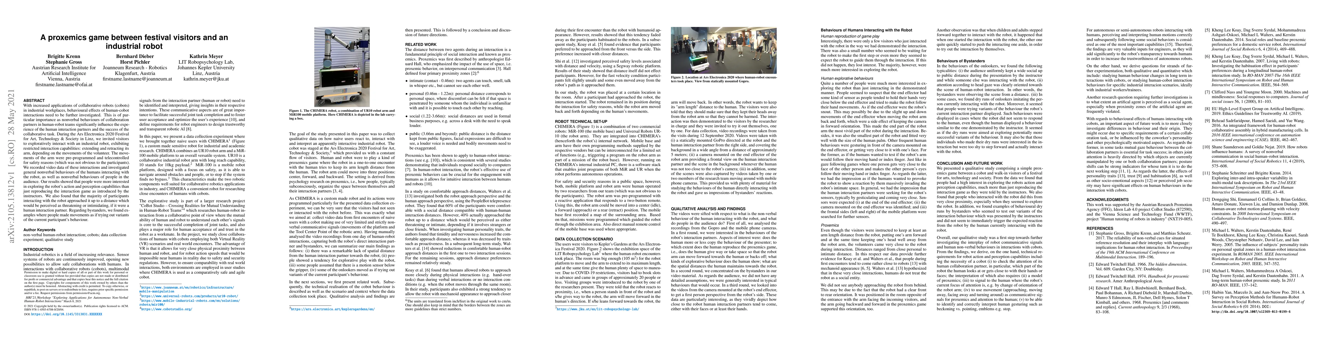 With increased applications of collaborative robots (cobots) in industrial workplaces, behavioural effects of human-cobot interactions need to be further investigated. This is of particular importance as nonverbal behaviours of collaboration partners in human-robot teams significantly influence the experience of the human interaction partners and the success of the collaborative task. During the Ars Electronica 2020 Festival for Art, Technology and Society (Linz, Austria), we invited visitors to exploratively interact with an industrial robot, exhibiting restricted interaction capabilities: extending and retracting its arm, depending on the movements of the volunteer. The movements of the arm were pre-programmed and telecontrolled for safety reasons (which was not obvious to the participants). We recorded video data of these interactions and investigated general nonverbal behaviours of the humans interacting with the robot, as well as nonverbal behaviours of people in the audience. Our results showed that people were more interested in exploring the robot's action and perception capabilities than just reproducing the interaction game as introduced by the instructors. We also found that the majority of participants interacting with the robot approached it up to a distance which would be perceived as threatening or intimidating, if it were a human interaction partner. Regarding bystanders, we found examples where people made movements as if trying out variants of the current participant's behaviour.