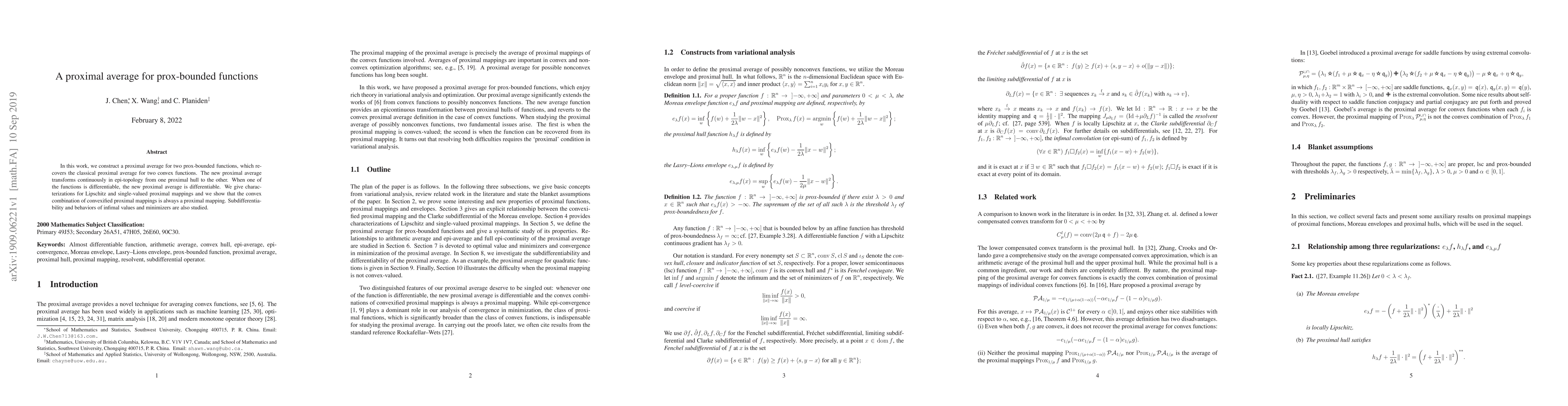 This paper introduces a novel proximal average for two prox-bounded functions, extending the classical proximal average to non-convex settings. It demonstrates continuous transformation and differentiability properties, and explores subdifferentiability, infimal values, and minimizer behaviors.