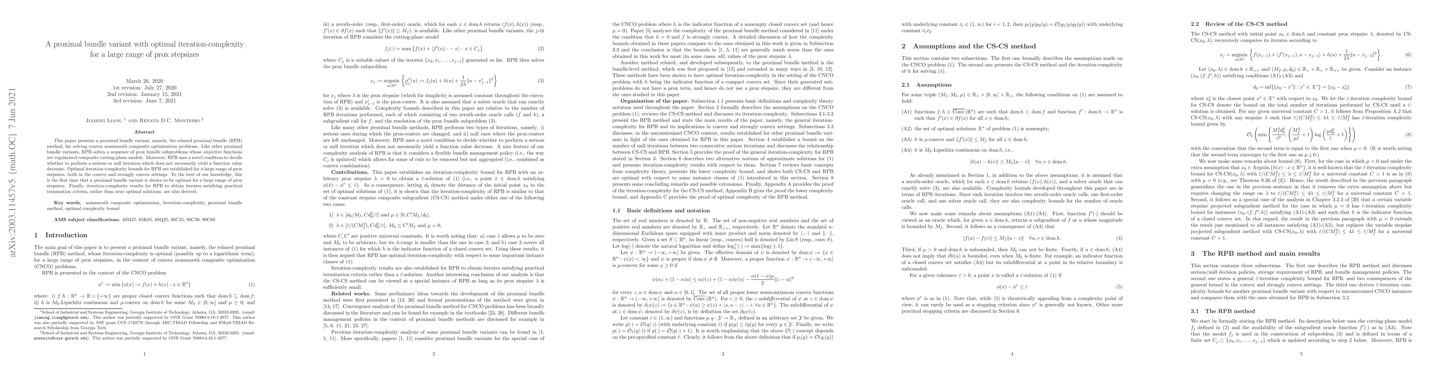 This paper presents a proximal bundle variant, namely, the relaxed proximal bundle (RPB) method, for solving convex nonsmooth composite optimization problems. Like other proximal bundle variants, RPB solves a sequence of prox bundle subproblems whose objective functions are regularized composite cutting-plane models. Moreover, RPB uses a novel condition to decide whether to perform a serious or null iteration which does not necessarily yield a function value decrease. Optimal iteration-complexity bounds for RPB are established for a large range of prox stepsizes, both in the convex and strongly convex settings. To the best of our knowledge, this is the first time that a proximal bundle variant is shown to be optimal for a large range of prox stepsizes. Finally, iteration-complexity results for RPB to obtain iterates satisfying practical termination criteria, rather than near optimal solutions, are also derived.