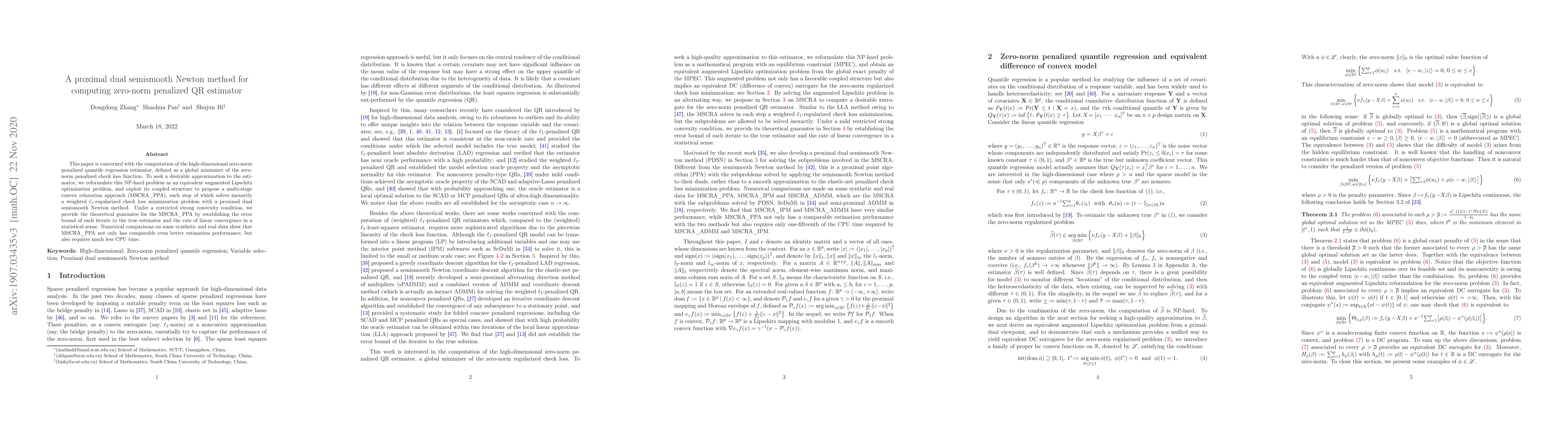 This paper proposes a proximal dual semismooth Newton method for solving high-dimensional zero-norm penalized quantile regression, reformulating the NP-hard problem as an augmented Lipschitz optimization problem. The method achieves comparable or better performance with significantly reduced computational time compared to existing approaches.