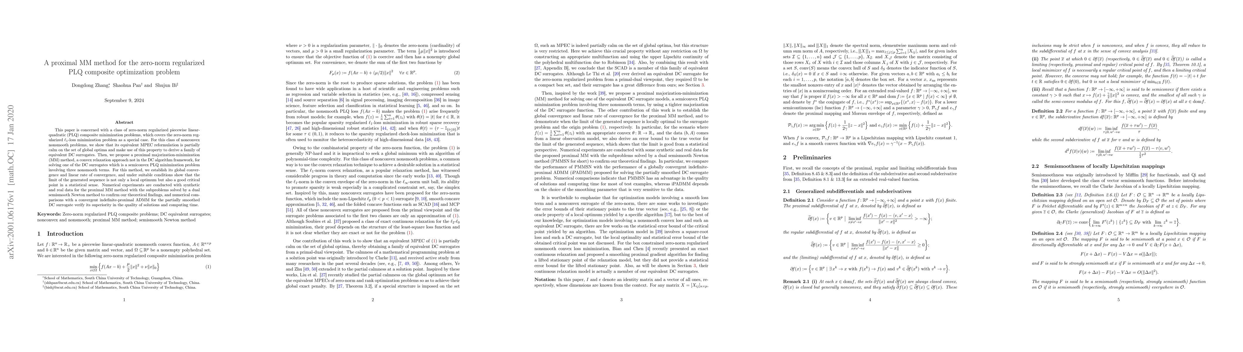 This paper is concerned with a class of zero-norm regularized piecewise linear-quadratic (PLQ) composite minimization problems, which covers the zero-norm regularized $\ell_1$-loss minimization problem as a special case. For this class of nonconvex nonsmooth problems, we show that its equivalent MPEC reformulation is partially calm on the set of global optima and make use of this property to derive a family of equivalent DC surrogates. Then, we propose a proximal majorization-minimization (MM) method, a convex relaxation approach not in the DC algorithm framework, for solving one of the DC surrogates which is a semiconvex PLQ minimization problem involving three nonsmooth terms. For this method, we establish its global convergence and linear rate of convergence, and under suitable conditions show that the limit of the generated sequence is not only a local optimum but also a good critical point in a statistical sense. Numerical experiments are conducted with synthetic and real data for the proximal MM method with the subproblems solved by a dual semismooth Newton method to confirm our theoretical findings, and numerical comparisons with a convergent indefinite-proximal ADMM for the partially smoothed DC surrogate verify its superiority in the quality of solutions and computing time.