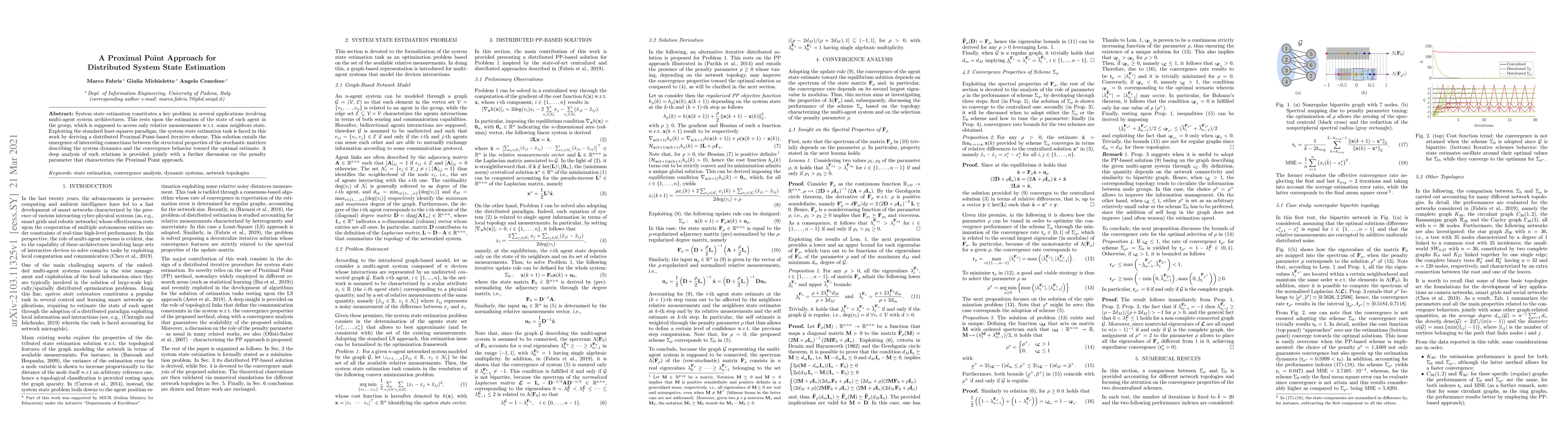 System state estimation constitutes a key problem in several applications involving multi-agent system architectures. This rests upon the estimation of the state of each agent in the group, which is supposed to access only relative measurements w.r.t. some neighbors state. Exploiting the standard least-squares paradigm, the system state estimation task is faced in this work by deriving a distributed Proximal Point-based iterative scheme. This solution entails the emergence of interesting connections between the structural properties of the stochastic matrices describing the system dynamics and the convergence behavior toward the optimal estimate. A deep analysis of such relations is provided, jointly with a further discussion on the penalty parameter that characterizes the Proximal Point approach.