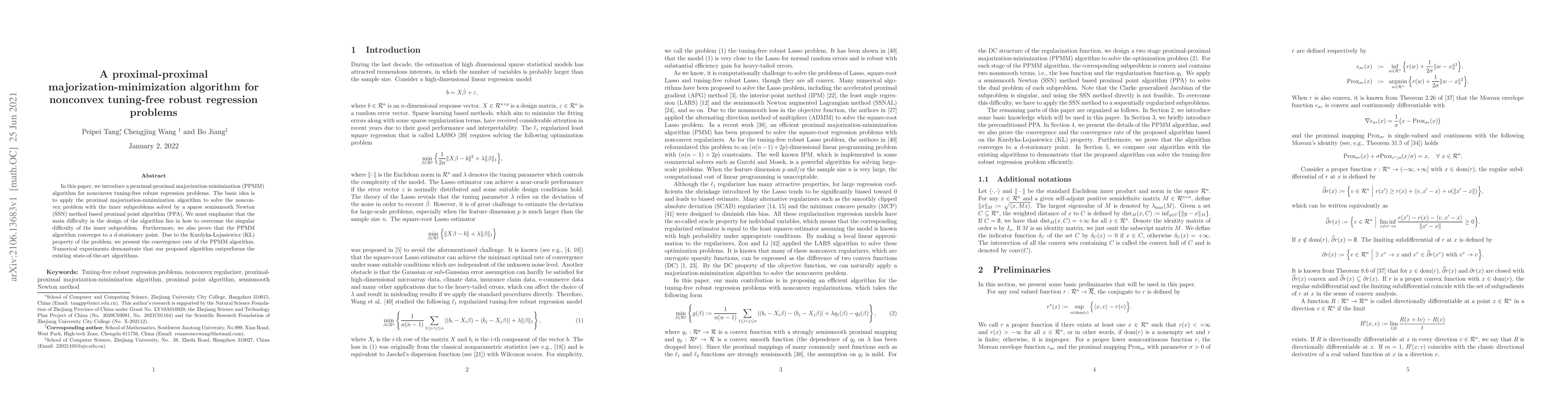 This paper proposes a proximal-proximal majorization-minimization (PPMM) algorithm for solving nonconvex tuning-free robust regression problems. The PPMM algorithm leverages a sparse semismooth Newton method for inner subproblems and converges to a d-stationary point, outperforming existing methods in numerical experiments.