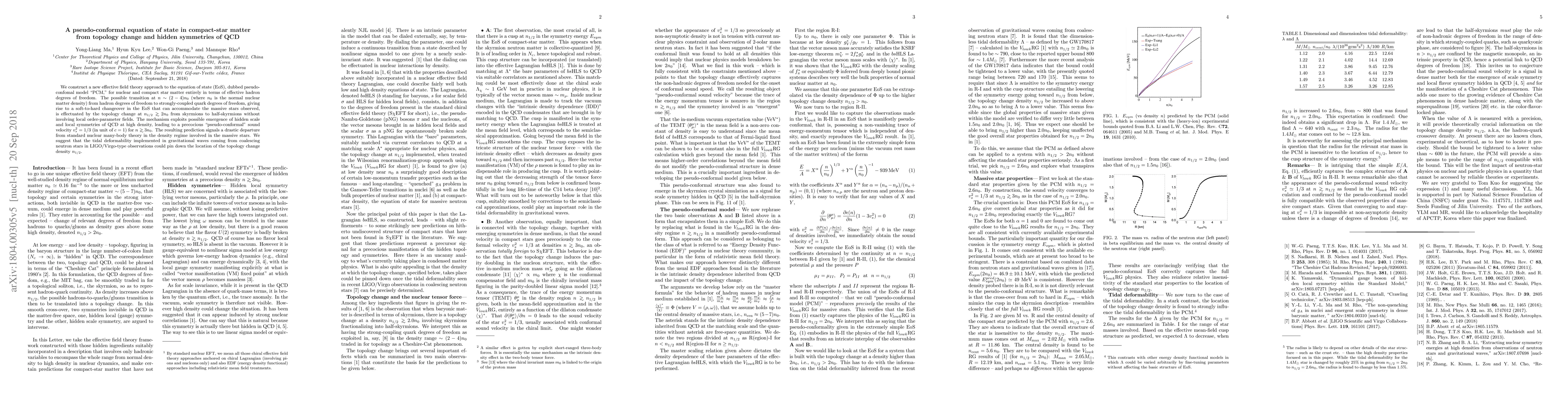 We construct a new effective field theory approach to the equation of state (EoS), dubbed pseudo-confomal model "PCM," for nuclear and compact star matter entirely in terms of effective hadron degrees of freedom. The possible transition at $n\sim (2-4) n_0$ (where $n_0$ is the normal nuclear matter density) from hadron degrees of freedom to strongly-coupled quark degrees of freedom, giving rise to a soft-to-hard changeover in the EoS that can accommodate the massive stars observed, is effectuated by the topology change at $n_{1/2}\gsim 2n_0$ from skyrmions to half-skyrmions without involving local order-parameter fields. The mechanism exploits possible emergence of hidden scale and local symmetries of QCD at high density, leading to a precocious "pseudo-conformal" sound velocity $v_s^2=1/3$ (in unit of $c=1$) for $n\gsim 3n_0$. The resulting prediction signals a drastic departure from standard nuclear many-body theory in the density regime involved in the massive stars. We suggest that the tidal deformability implemented in gravitational waves coming from coalescing neutron stars in LIGO/Virgo-type observations could pin down the location of the topology change density $n_{1/2}$.