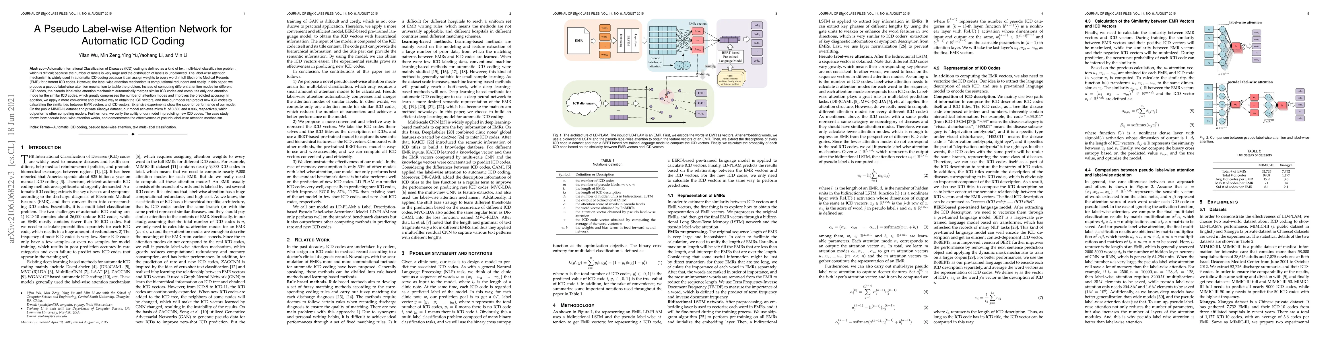 This paper proposes a pseudo label-wise attention network to improve automatic ICD coding by merging similar ICD codes to reduce computational cost while maintaining accuracy. The model achieves superior performance on MIMIC-III and Xiangya datasets, outperforming other methods and demonstrating the ability to predict new ICD codes.