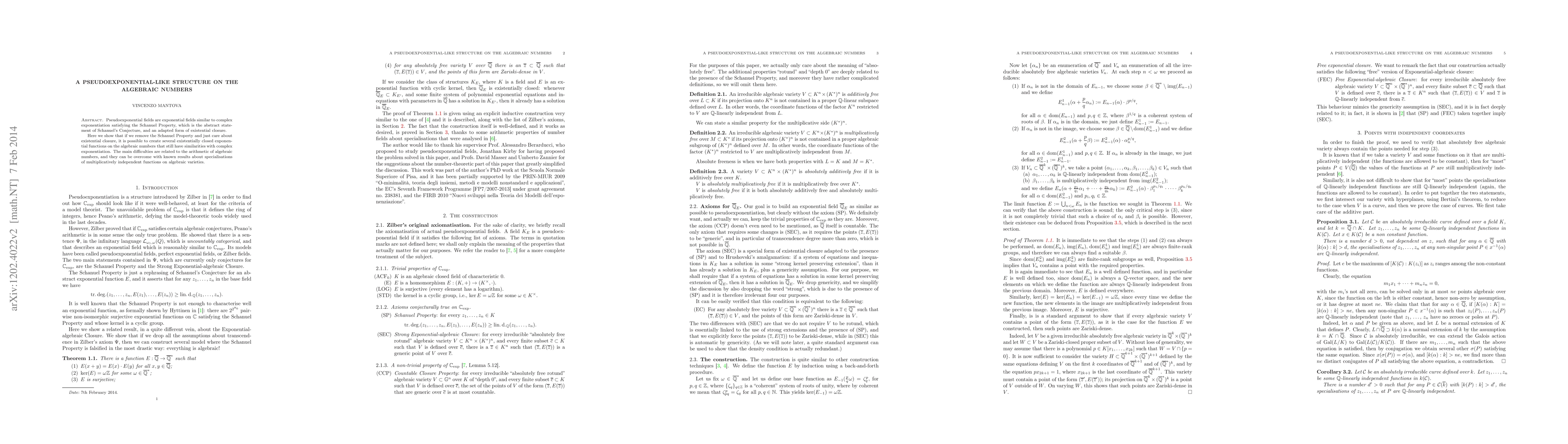 Pseudoexponential fields are exponential fields similar to complex exponentiation satisfying the Schanuel Property, which is the abstract statement of Schanuel's Conjecture, and an adapted form of existential closure. Here we show that if we remove the Schanuel Property and just care about existential closure, it is possible to create several existentially closed exponential functions on the algebraic numbers that still have similarities with complex exponentiation. The main difficulties are related to the arithmetic of algebraic numbers, and they can be overcome with known results about specialisations of multiplicatively independent functions on algebraic varieties.