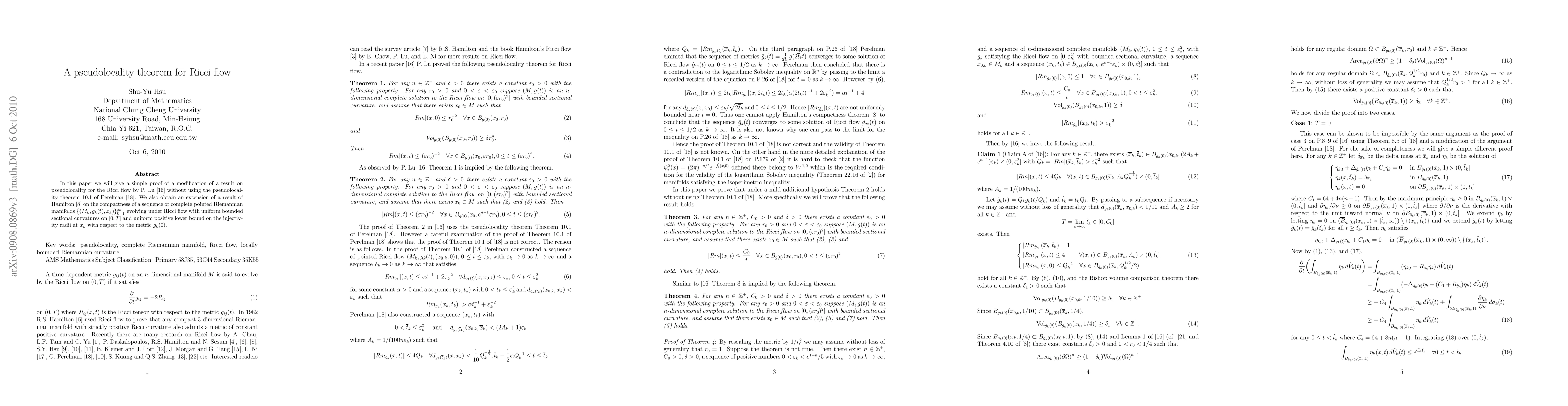 In this paper we will give a simple proof of a modification of a result on pseudolocality for the Ricci flow by P.Lu without using the pseudolocality theorem 10.1 of Perelman [P1]. We also obtain an extension of a result of Hamilton on the compactness of a sequence of complete pointed Riemannian manifolds $\{(M_k,g_k(t),x_k)\}_{k=1}^{\infty}$ evolving under Ricci flow with uniform bounded sectional curvatures on $[0,T]$ and uniform positive lower bound on the injectivity radii at $x_k$ with respect to the metric $g_k(0)$.