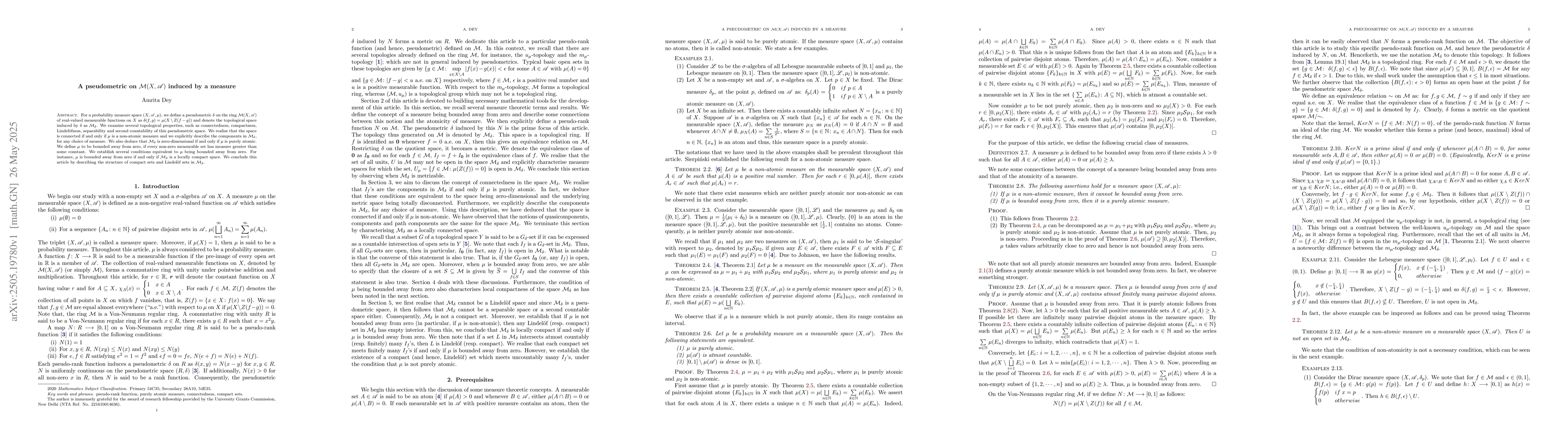 The research defines a pseudometric δ on the ring $\mathcal{M}(X,\mathscr{A})$ of real-valued measurable functions on a probability measure space $(X,\mathscr{A},\mu)$, and examines topological properties of the induced pseudometric space $\mathcal{M}_\delta$.