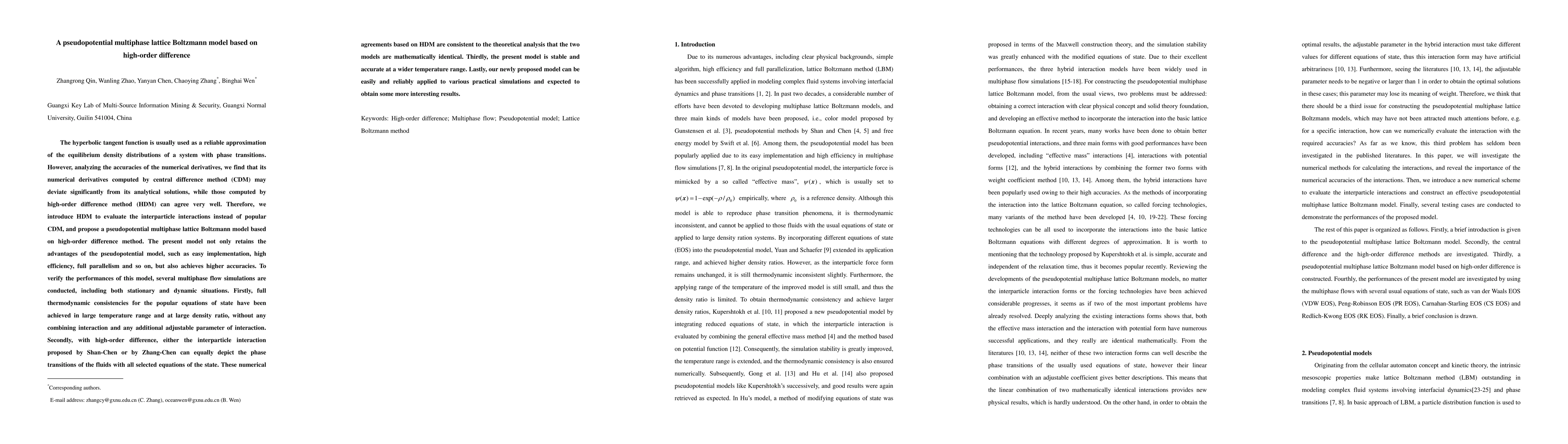 This paper proposes a pseudopotential multiphase lattice Boltzmann model based on high-order difference method (HDM) to improve the accuracy of numerical derivatives over the central difference method (CDM). The new model demonstrates higher accuracy, stability, and applicability across a wider temperature range, achieving full thermodynamic consistency without additional parameters.