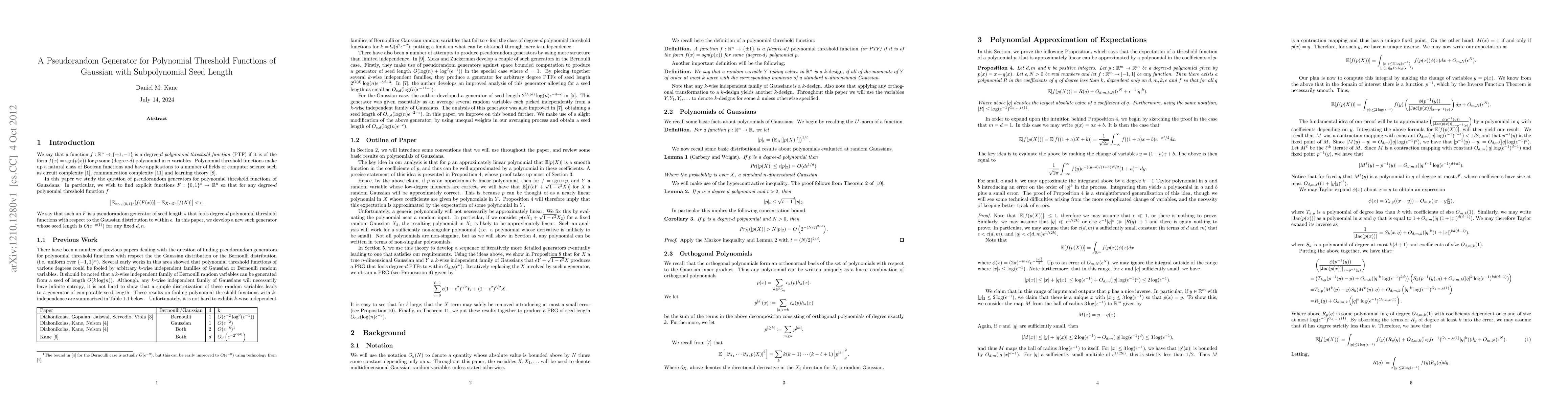 Summary: This paper presents a pseudorandom generator that effectively fools degree-$d$ polynomial threshold functions concerning the Gaussian distribution, with a seed length that scales subpolynomially in terms of $n$ and $\epsilon^{-c}$. The generator achieves this with a seed length of $O_{c,d}(\log(n) \epsilon^{-c})$.